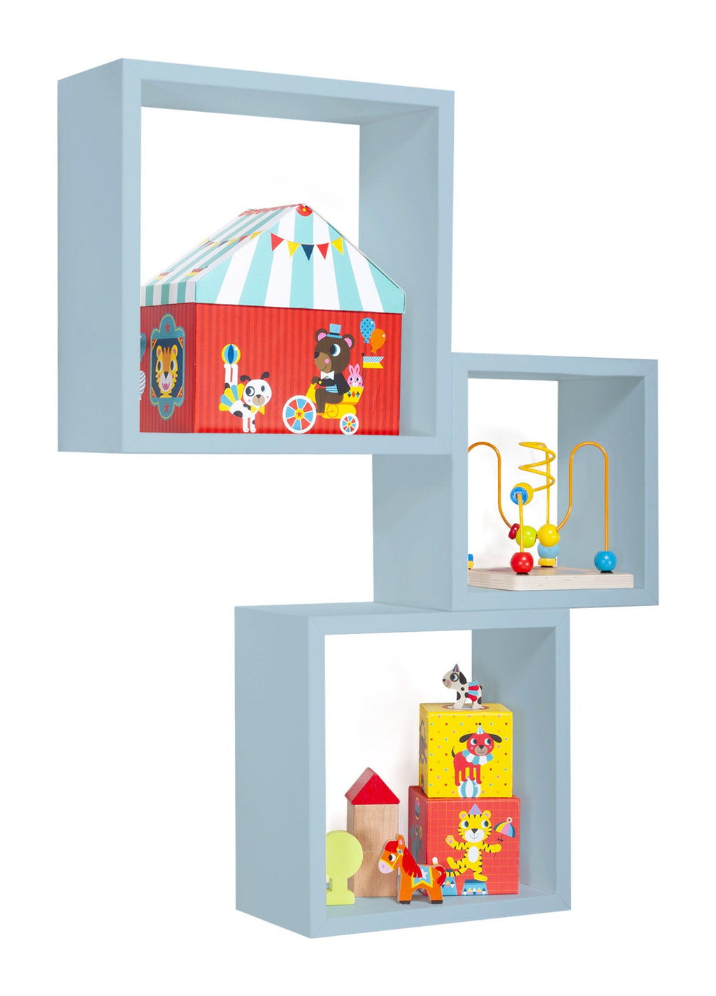 Set 3 Mensole da Parete Cubo in Fibra di Legno Incubo Blu Baltico