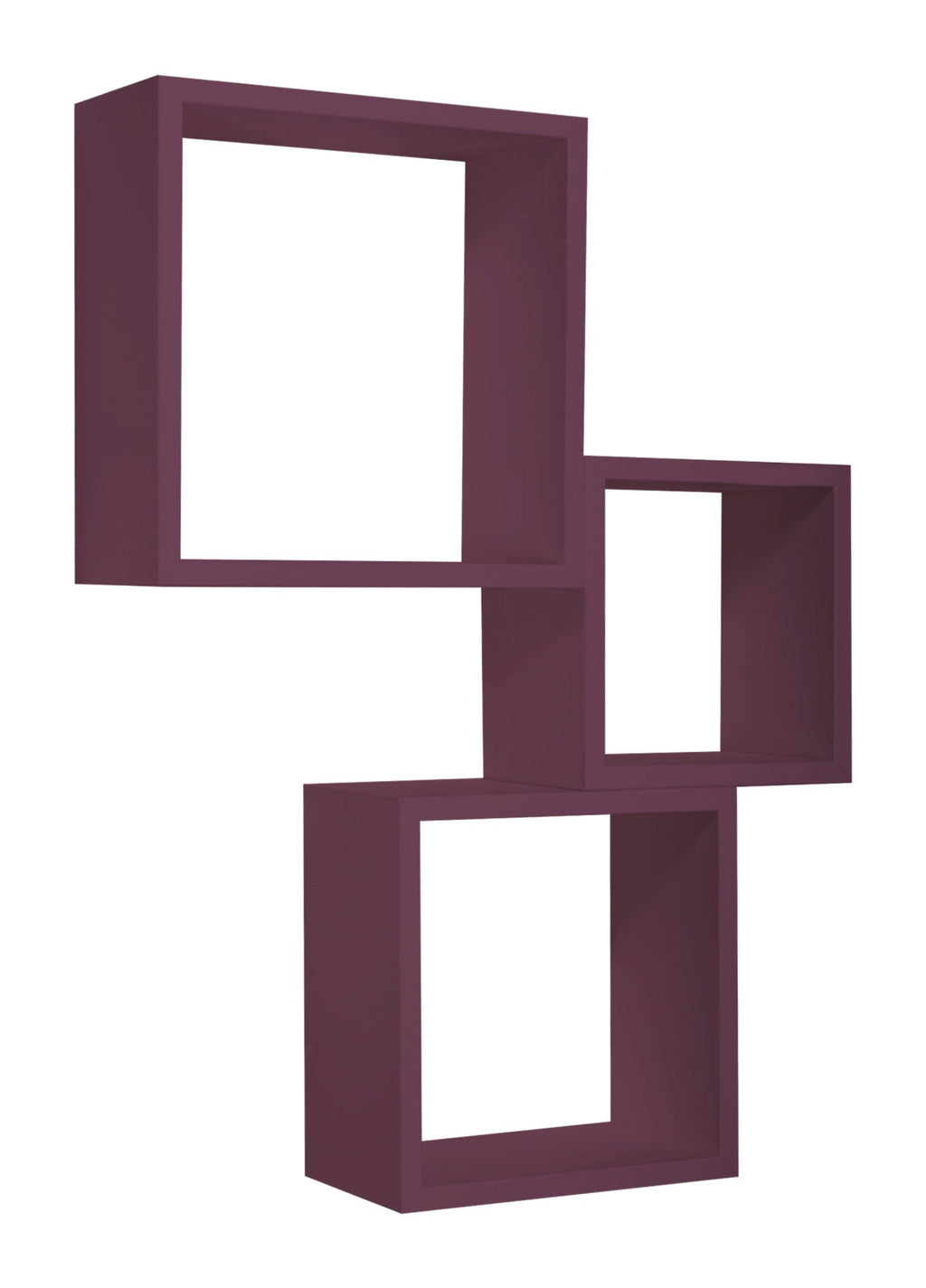 Set 3 Mensole da Parete Cubo in Fibra di Legno Incubo Viola Melanzana