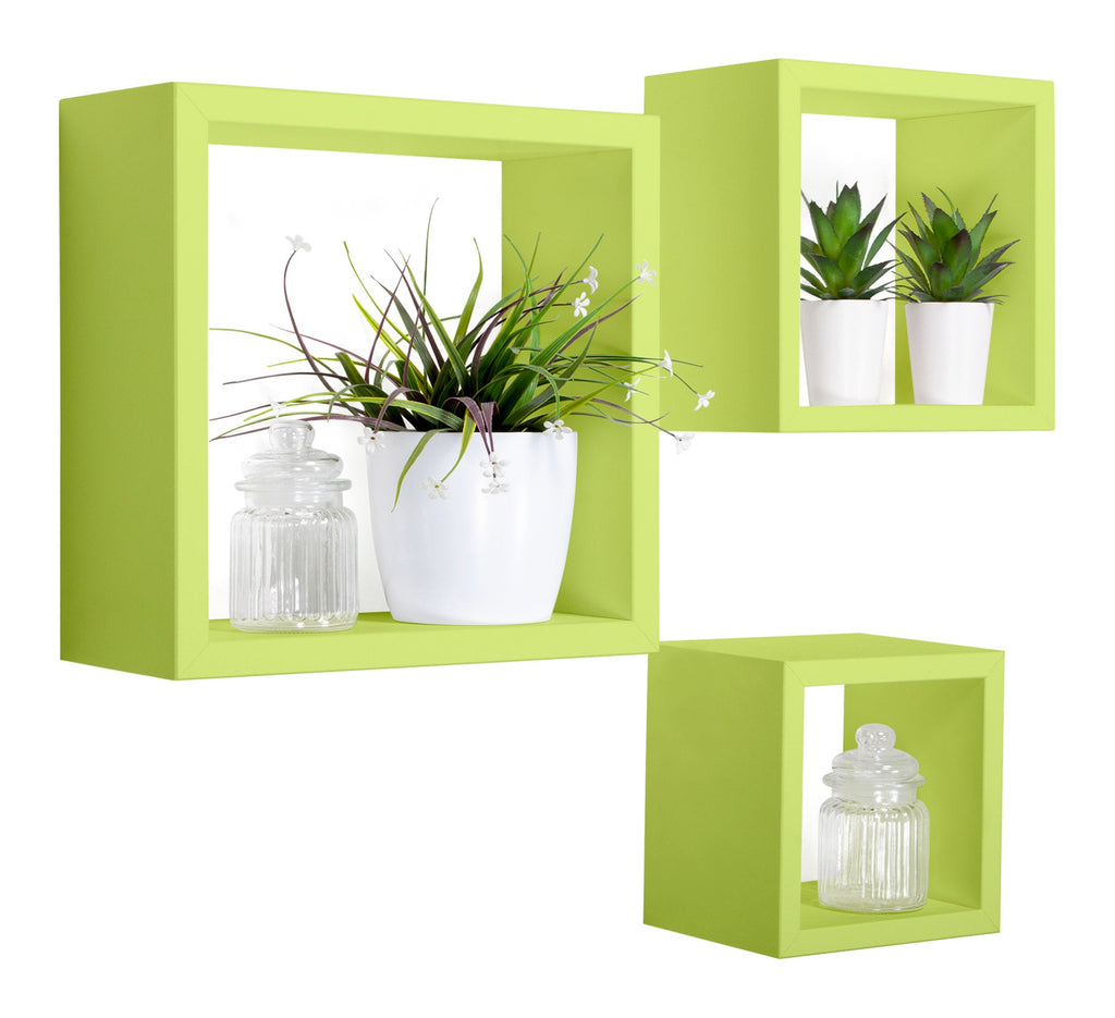 Set 3 Mensole da Parete Cubo in Fibra di Legno Rubic Verde