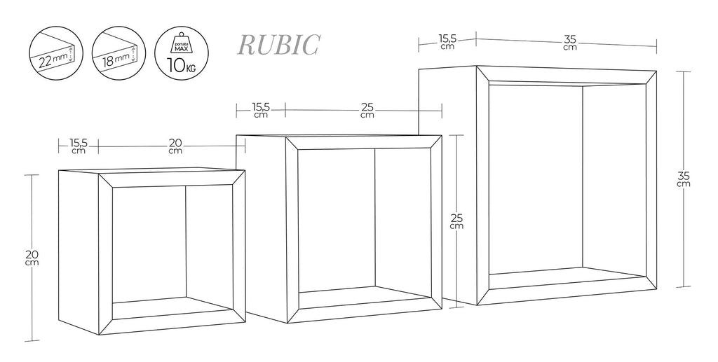 - Dimensioni mensola piccola (LxPxA): 25 x 15,5 x 25 cm
