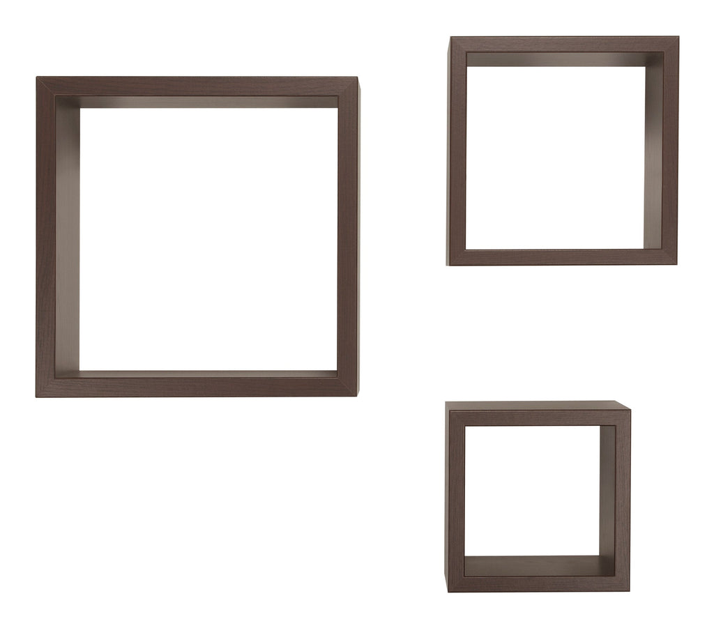 Set 3 Mensole da Parete Cubo in Fibra di Legno Rubic Wengè