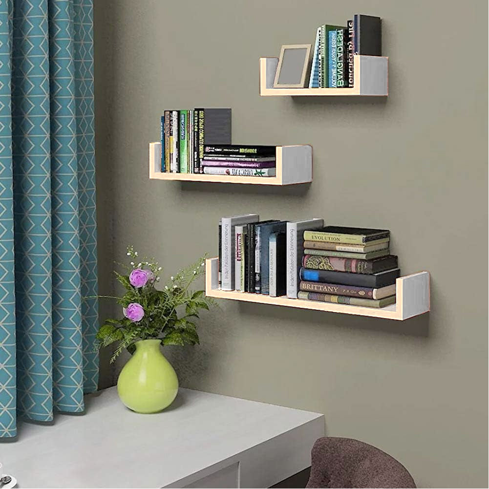 Set 3 Mensole da Parete Moderne Design con Bordi Mensola Scaffale Bianco Perla