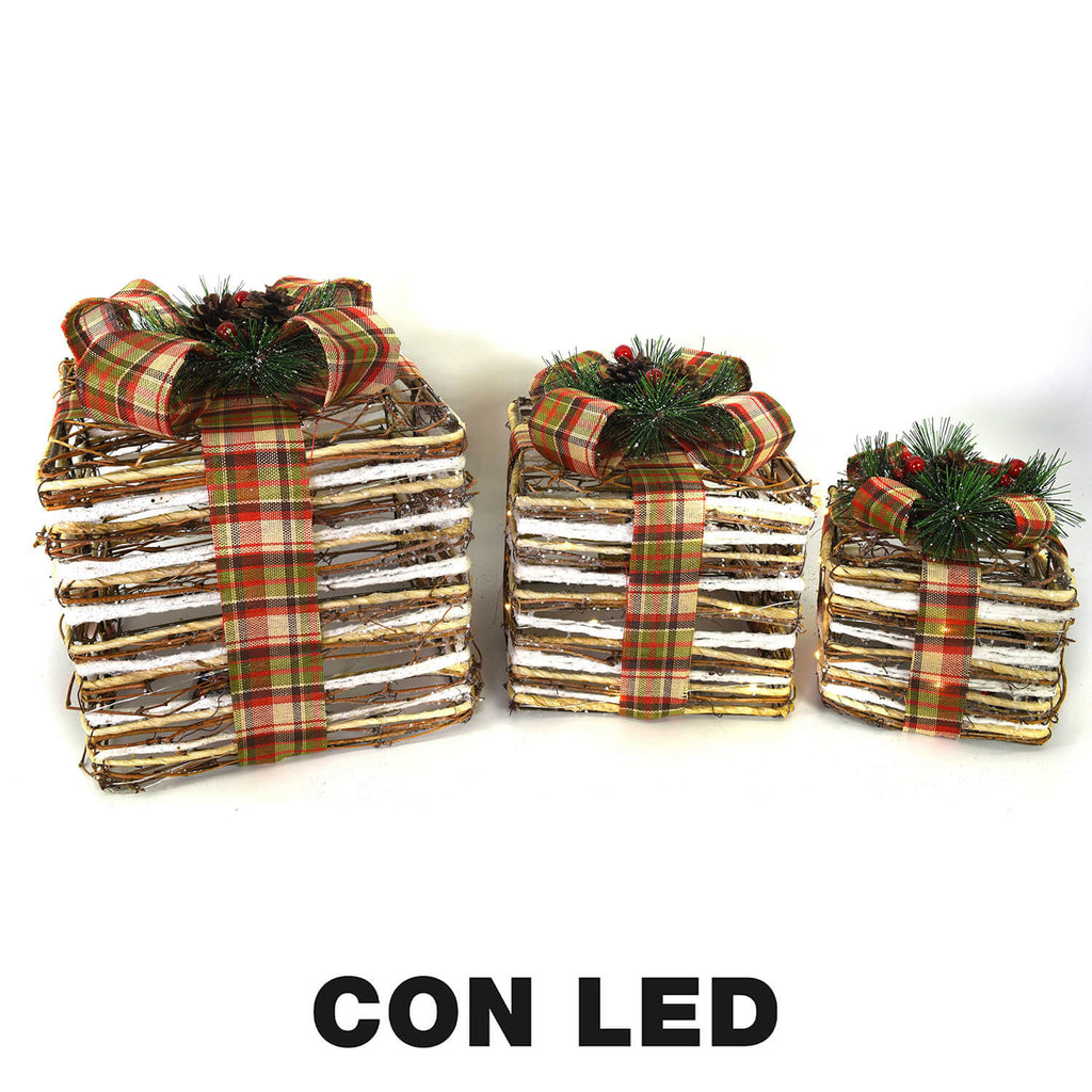 - Geschenkpackung 3^ natur mit led cm 25x25xh25