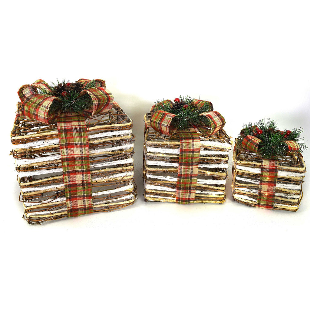 Set mit 3 dekorativen Geschenkboxen mit natürlicher LED