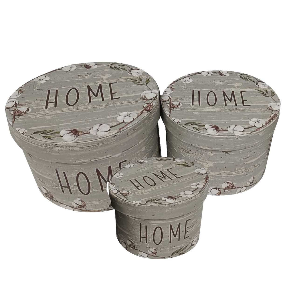 Set mit 3 Boxen aus rundem grauem Kunstleder