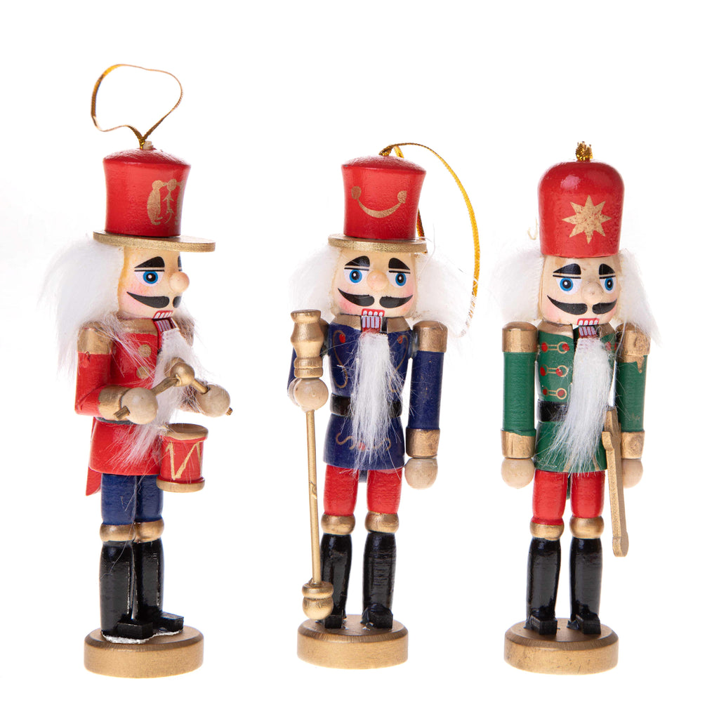 Set mit 3 Nussknacker-Soldaten H12,5 cm aus Holz