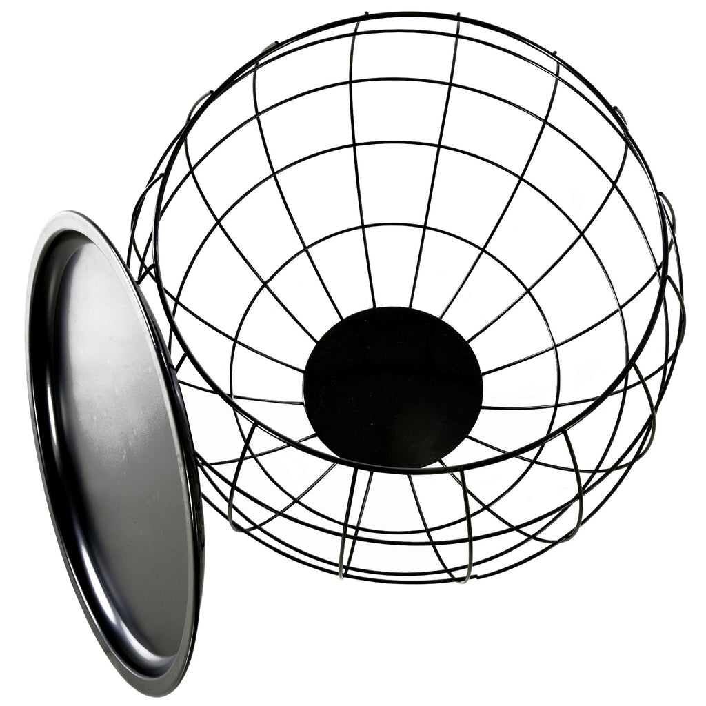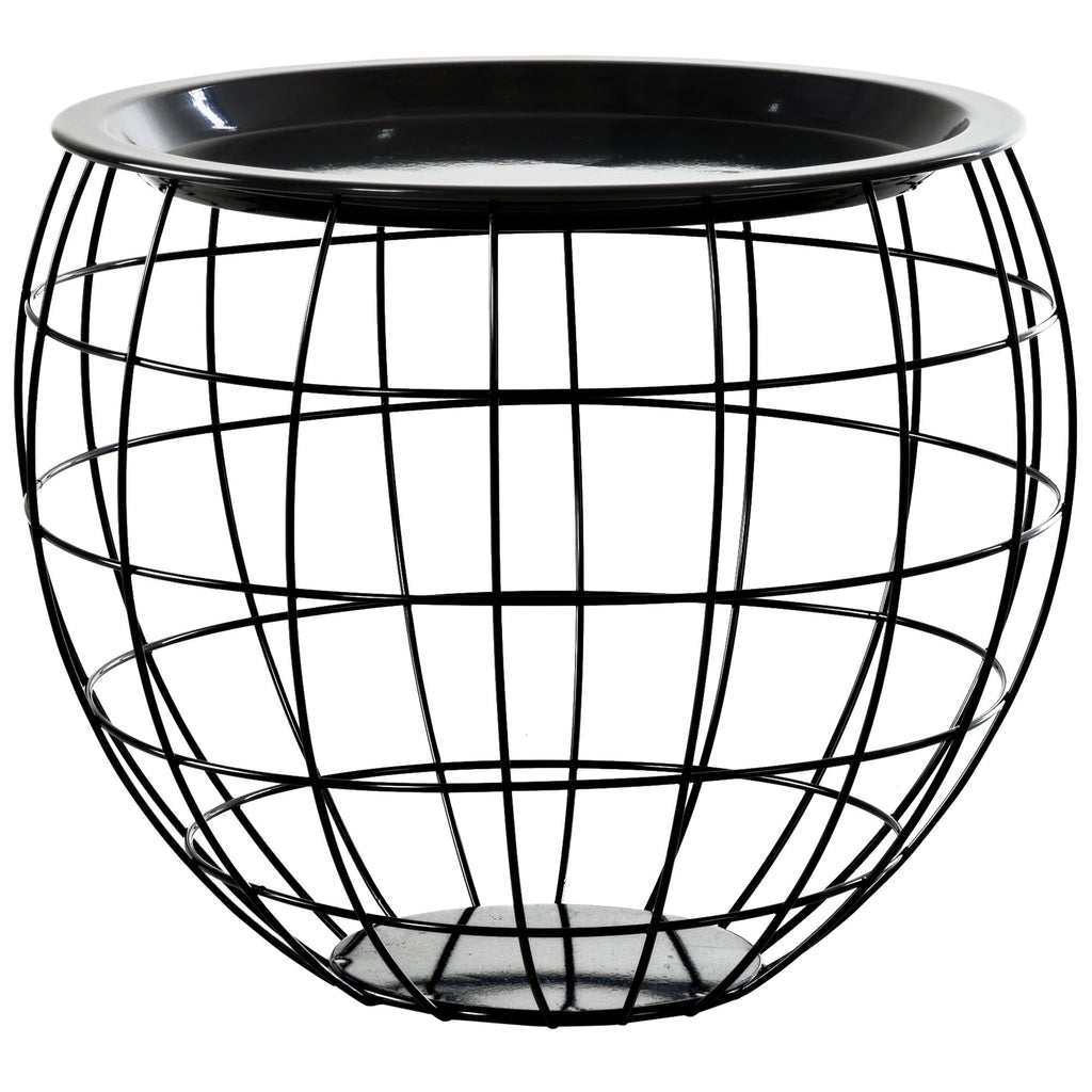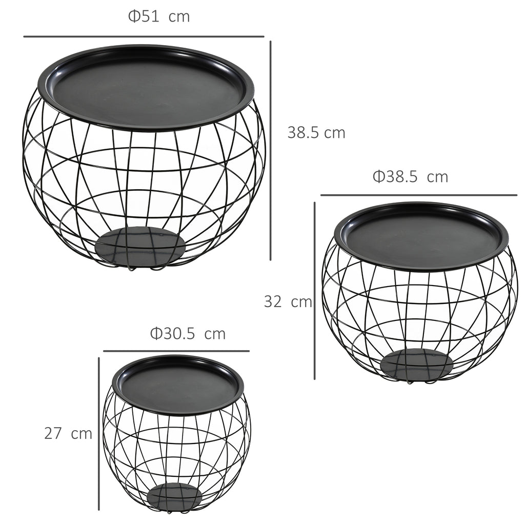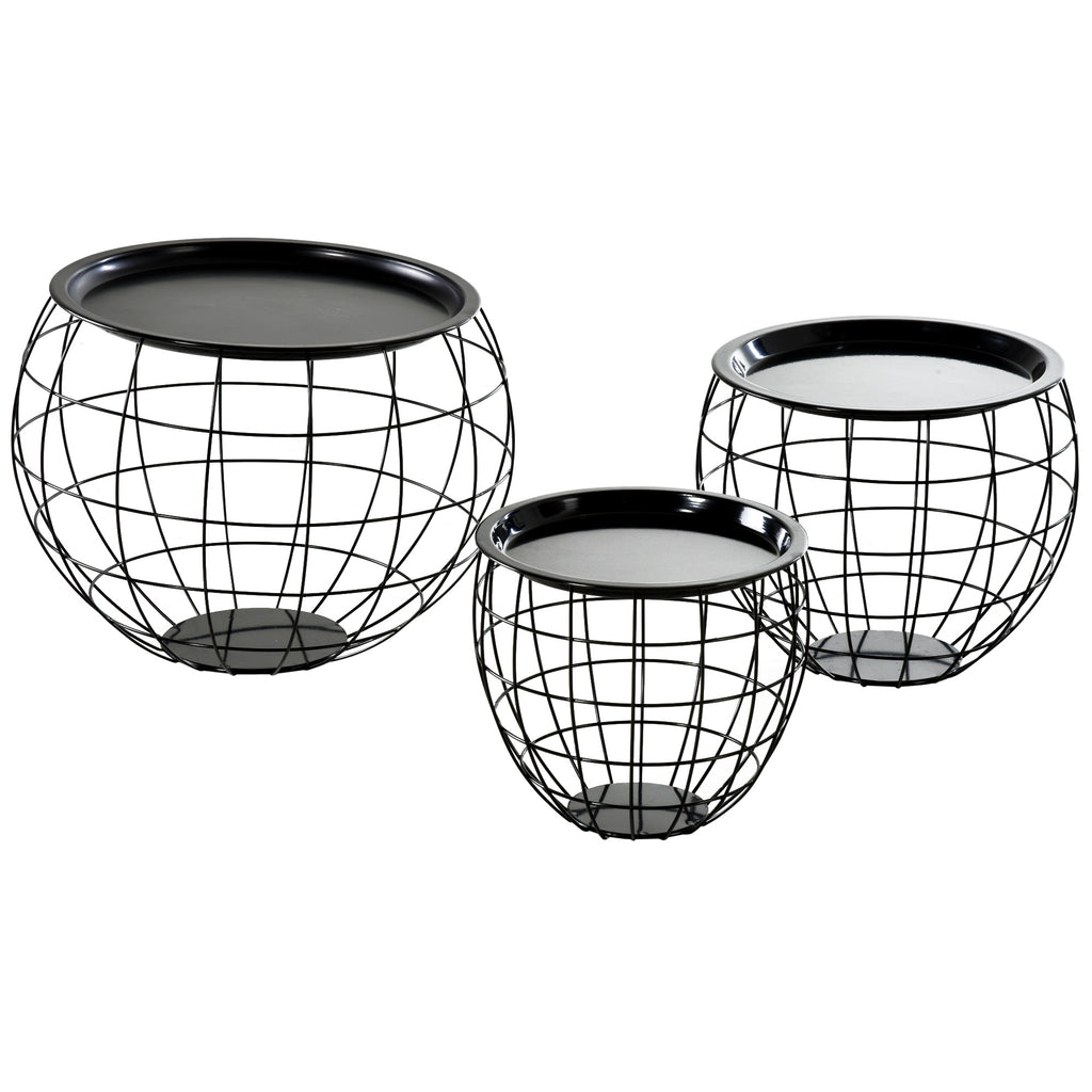 Set aus 3 runden Gitter-Containertischen aus schwarzem Stahl