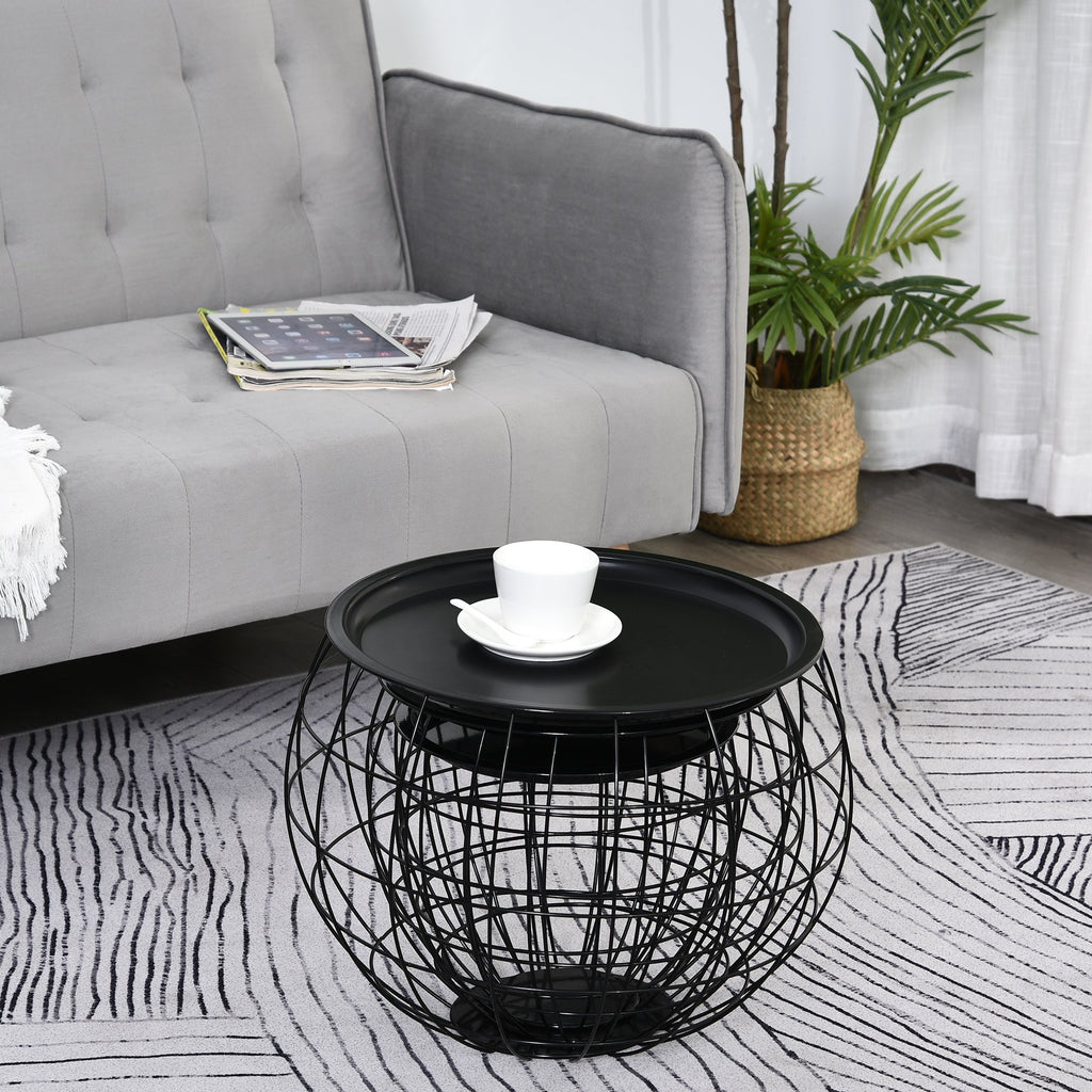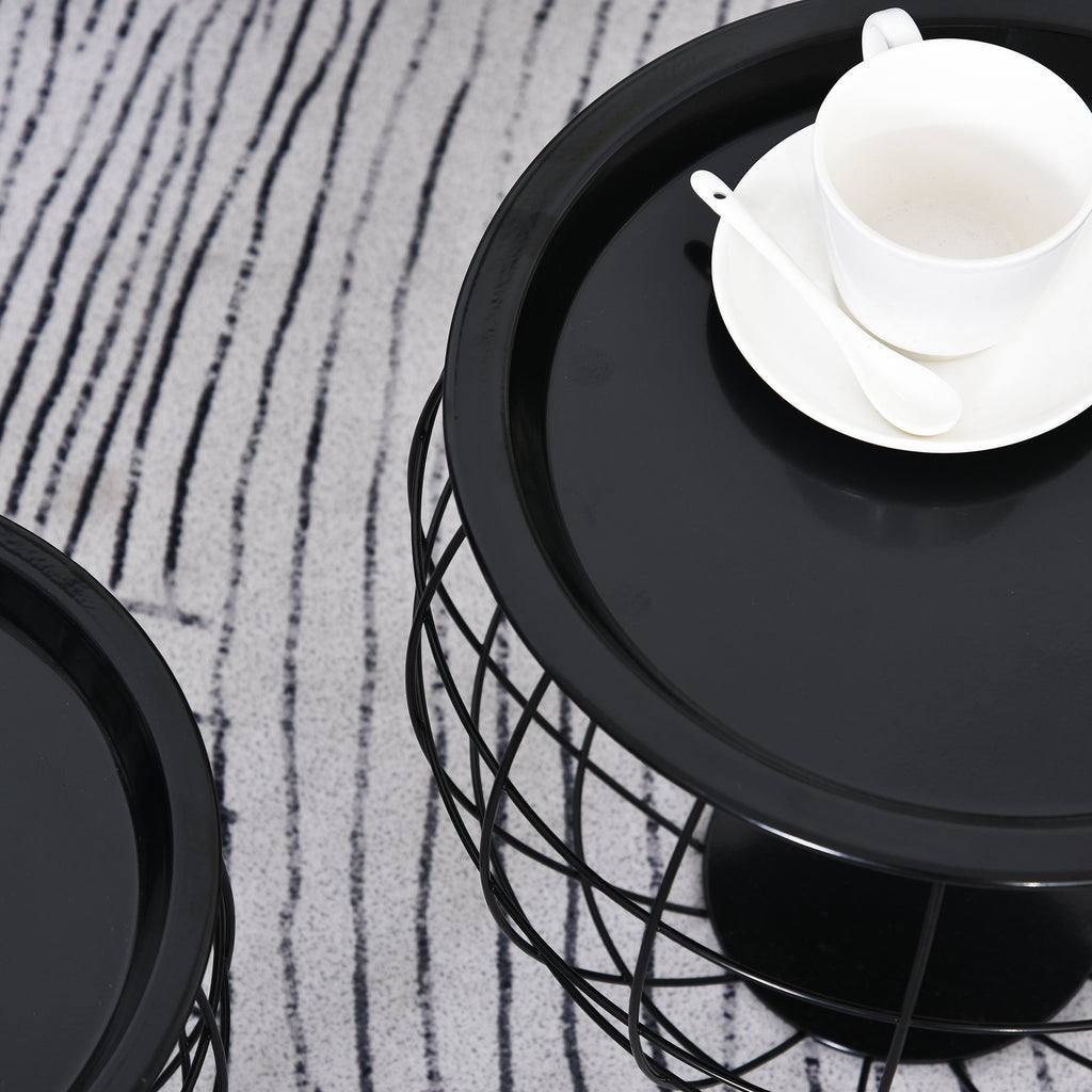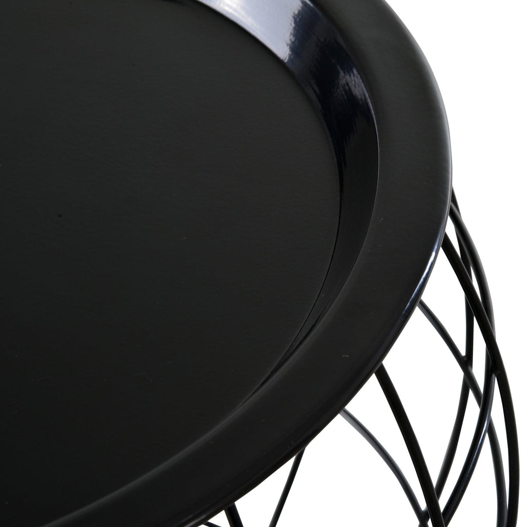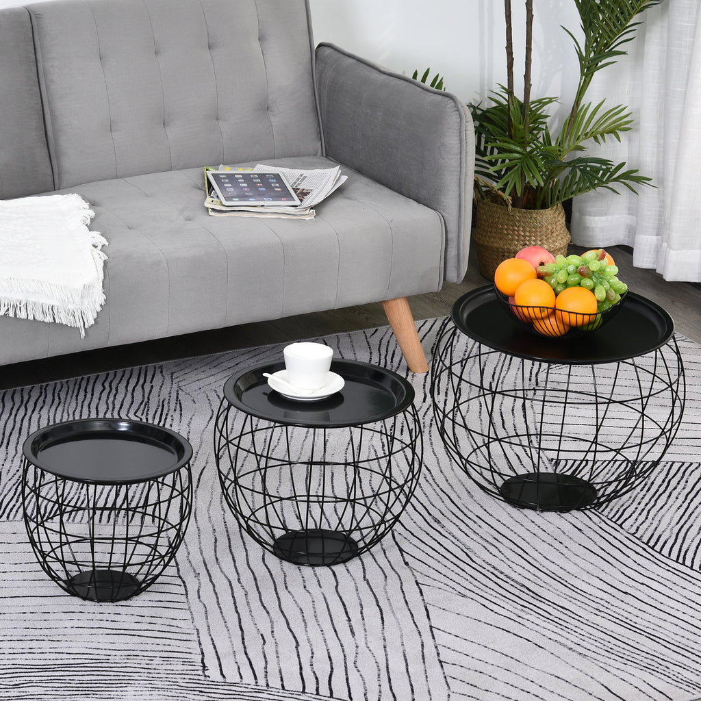 Set aus 3 runden Gitter-Containertischen aus schwarzem Stahl