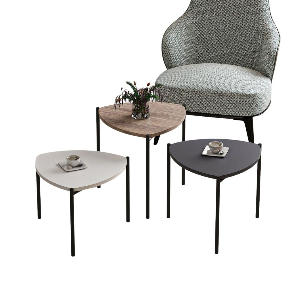 Tris tavolini da salotto bianco antracite noce Lenny.