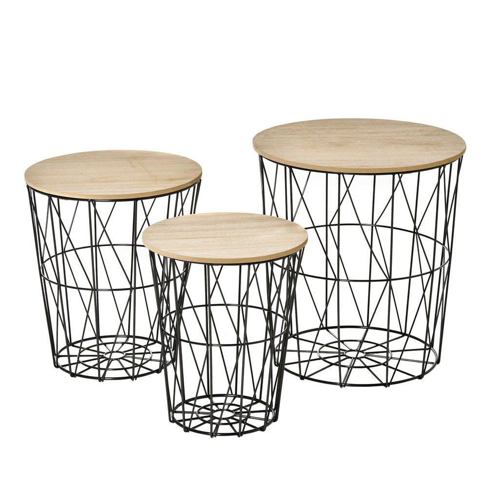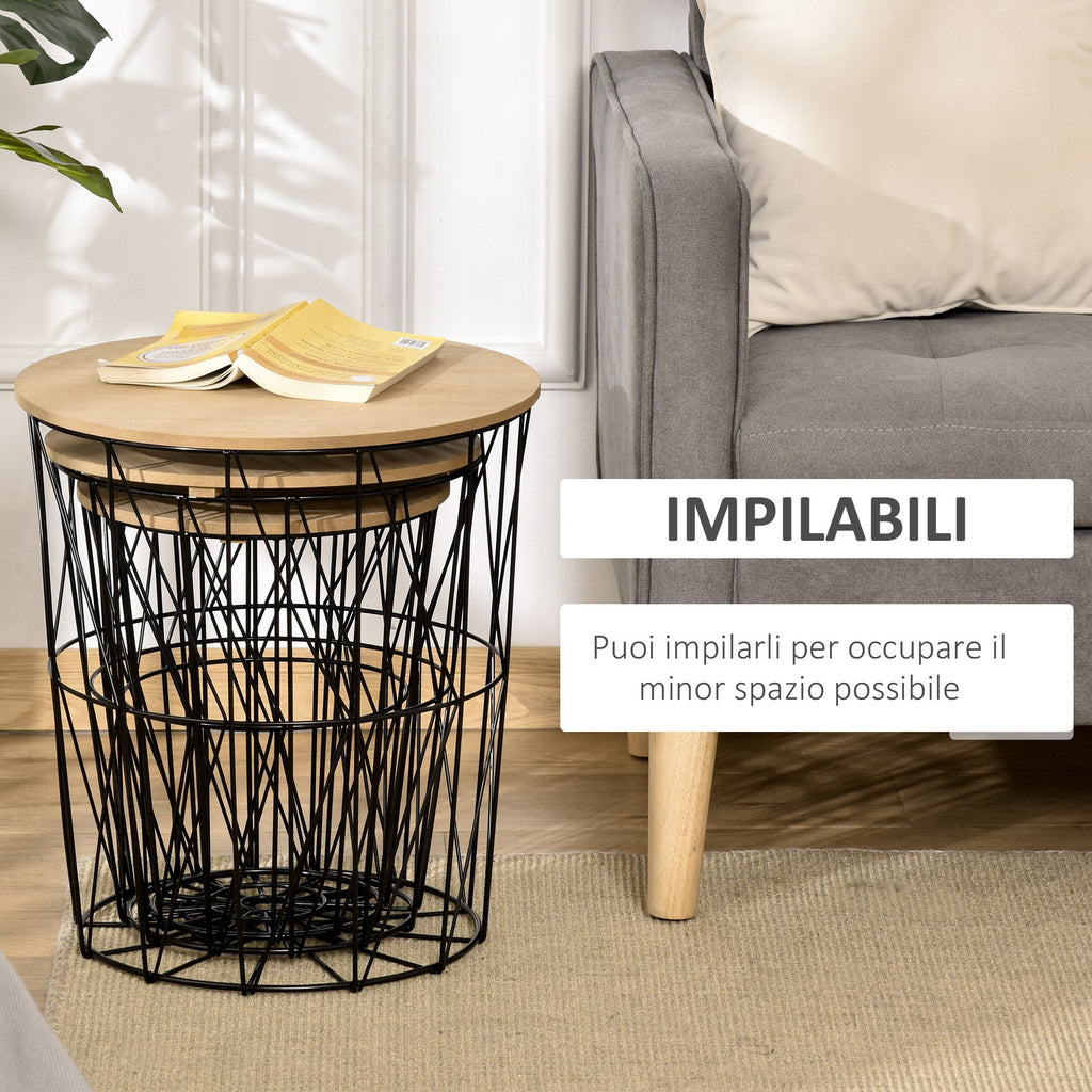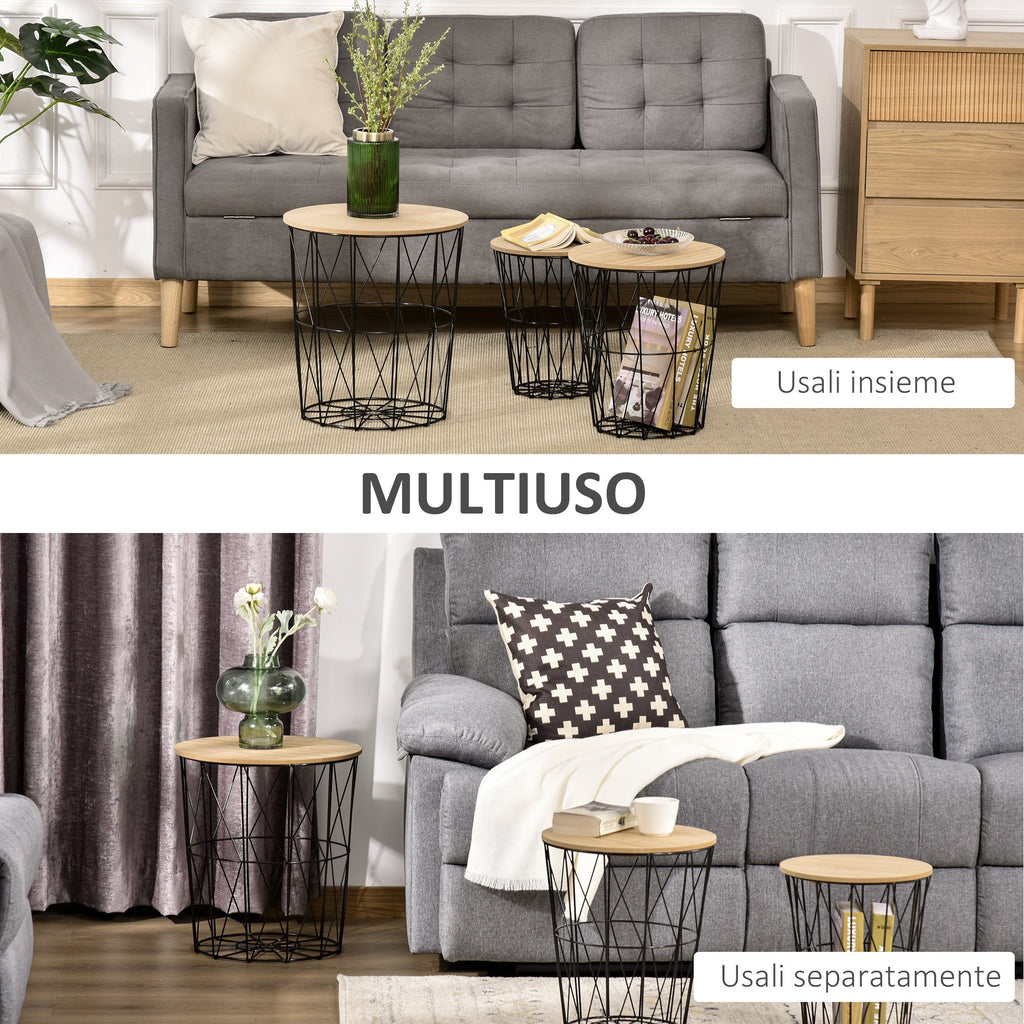 Set aus 3 Couchtischen mit herausnehmbarem Regal aus Stahl und MDF-Holz