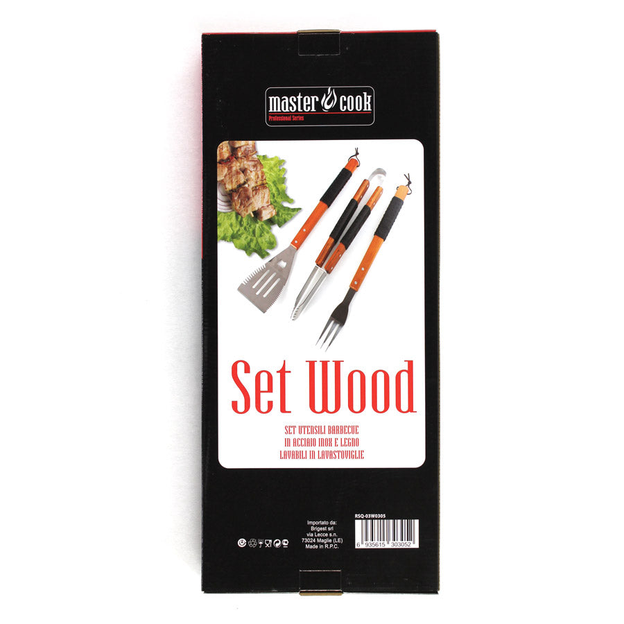 Set 3 Utensili Accessori per Barbecue in Acciaio Wood