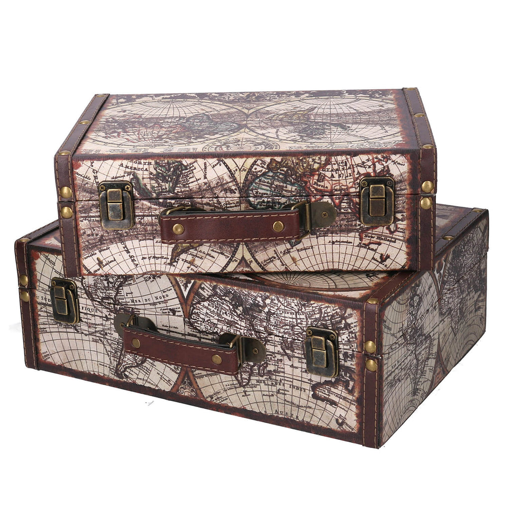 Set mit 3 rechteckigen Weltkartenkoffern aus Kunstleder