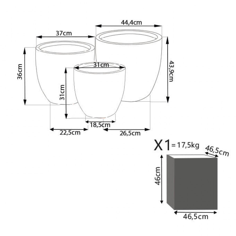 Set mit 3 Calla 1 Vasen aus grauer Tonfaser