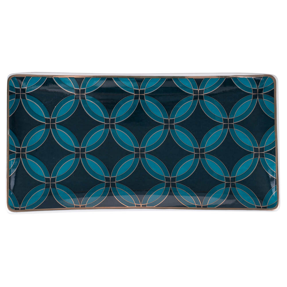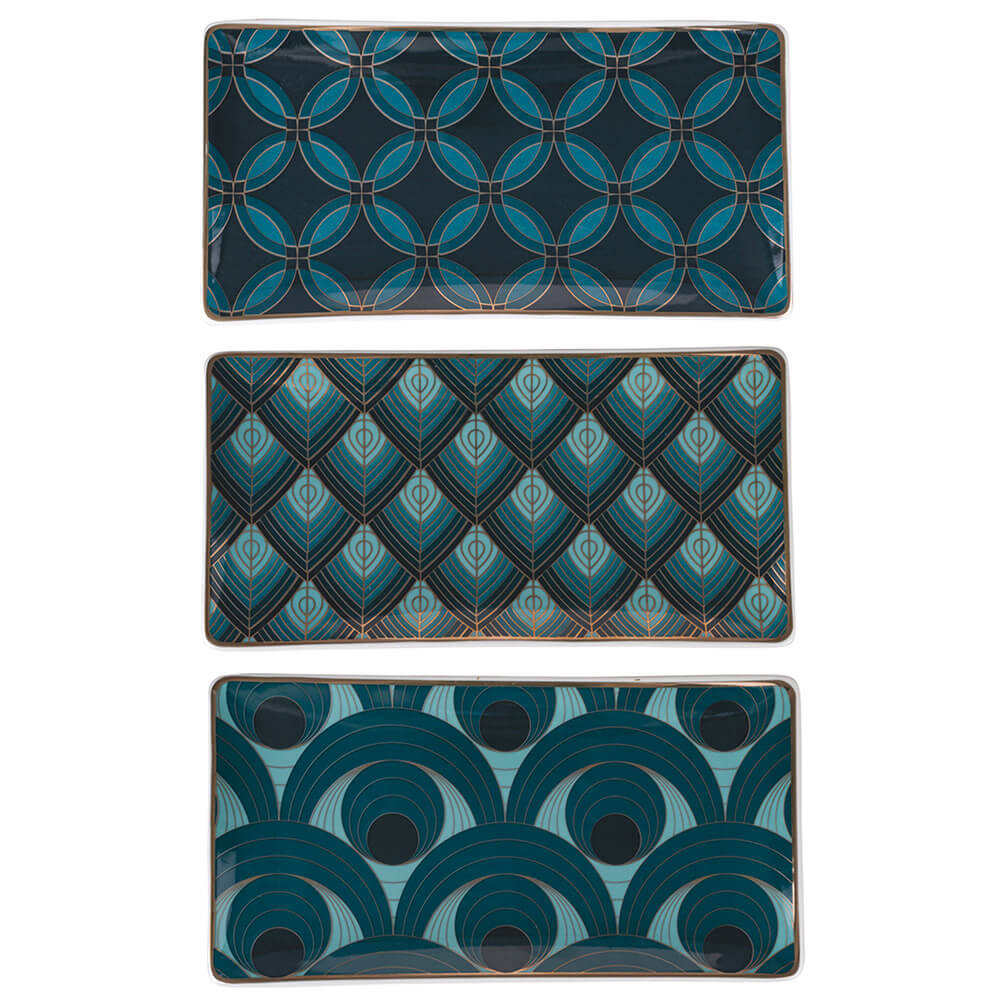Set 3 Vassoi 24,5x13x2 cm in Ceramica VdE Tivoli 1996 Vetiver Ottanio Nero e Oro