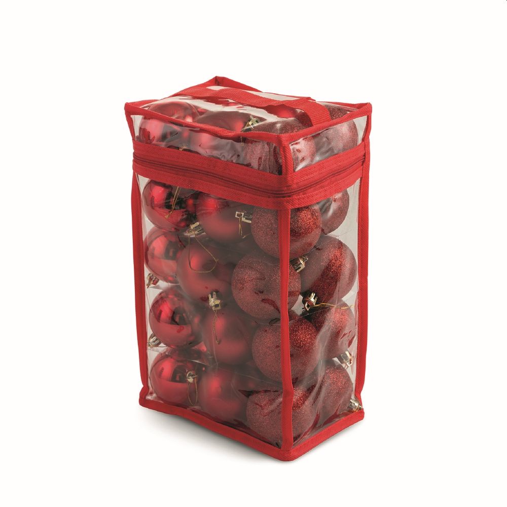 Set mit 30 Kunststoff-Weihnachtskugeln Ø6 cm mit roter Tasche