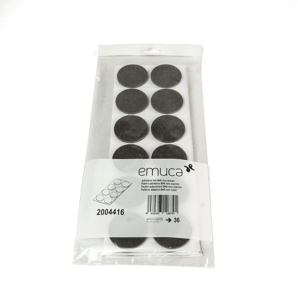 Set mit 360 braunen selbstklebenden Filzgleitern von Emuca für Tischbeine und Stühle Ø4 cm