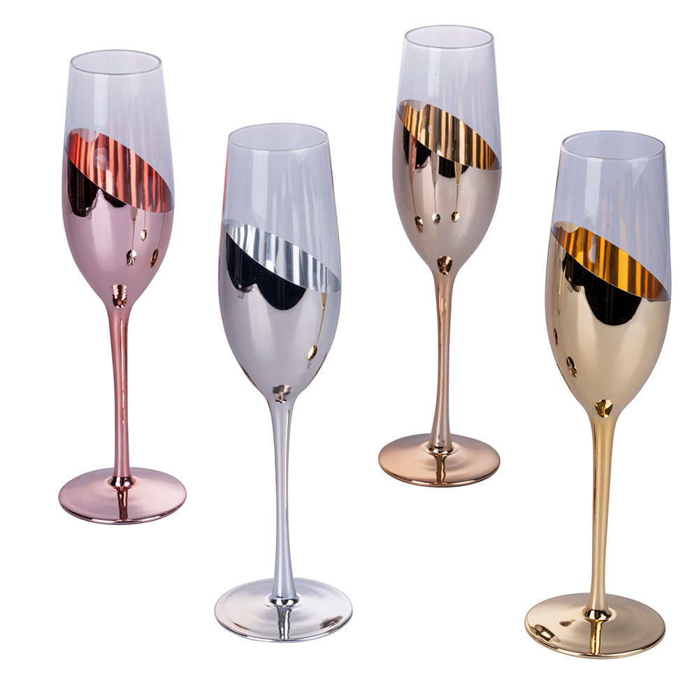- Farbe: 4 Flûtes in 4 verschiedenen Ausführungen: Gold, Silber, Roségold, Bronze