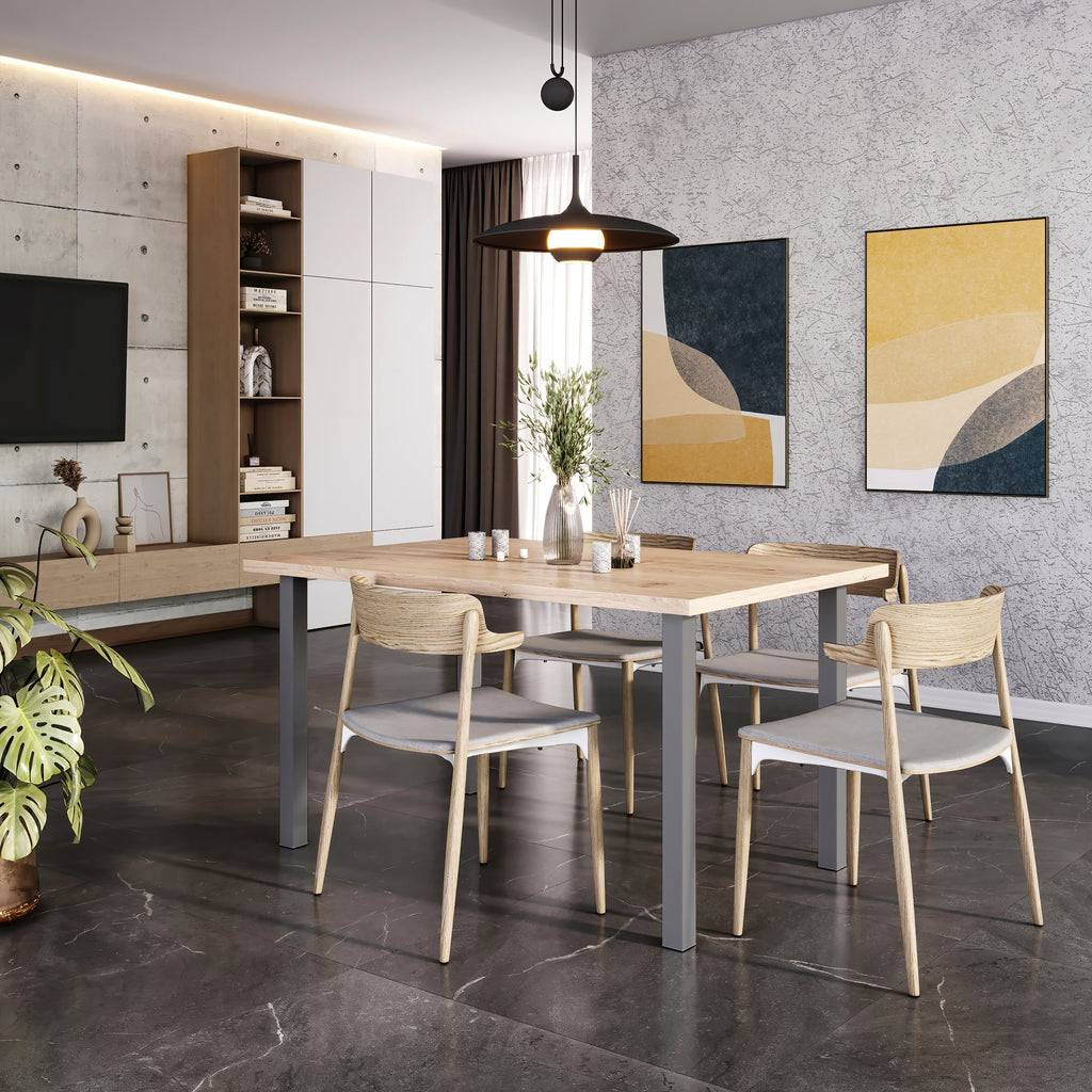 Includono tutto il necessario per il loro montaggio, basta solo aggiungere il tavolo che ti piace di più. Inoltre dispone di gommini in plastica che fungono da terminazione per le gambe ed evitano di rovinare il pavimento.
