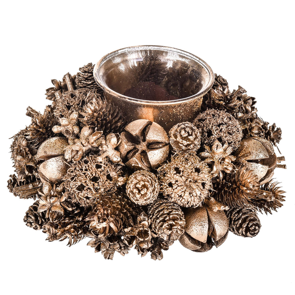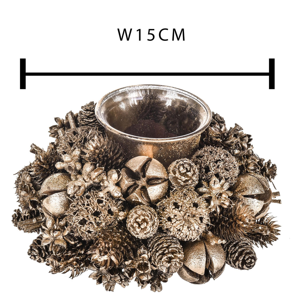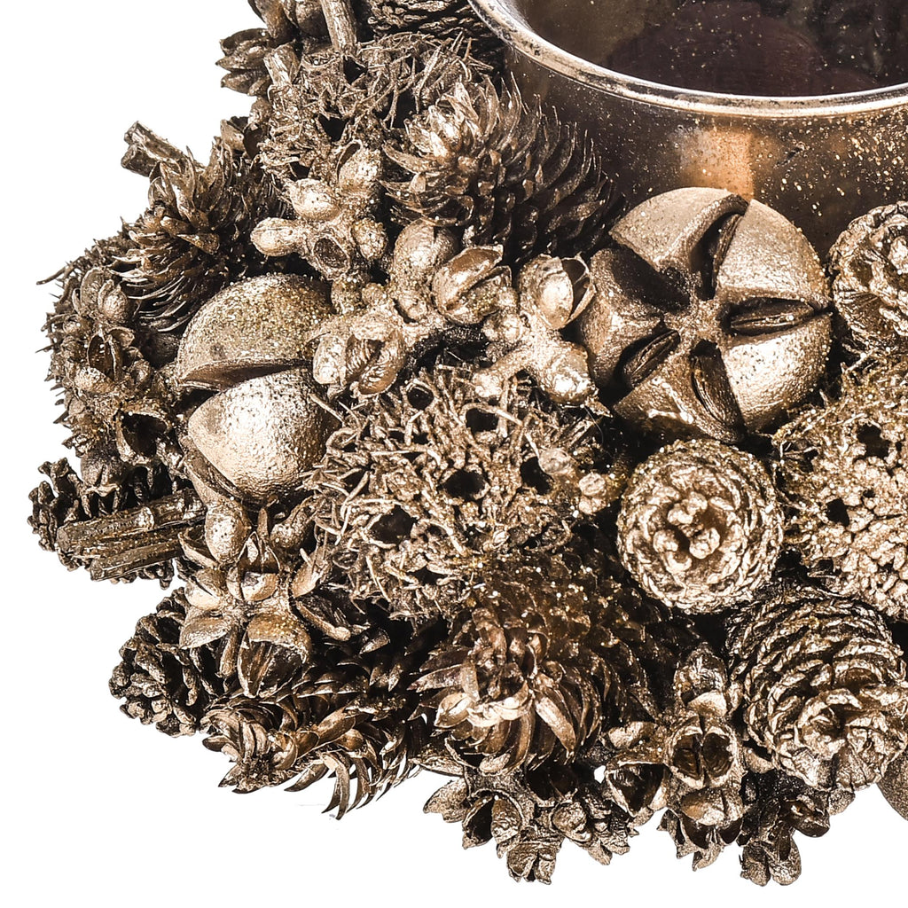 Set 4 Runde Kerze mit Tannenzapfen Ø15 cm Gold