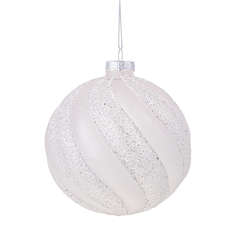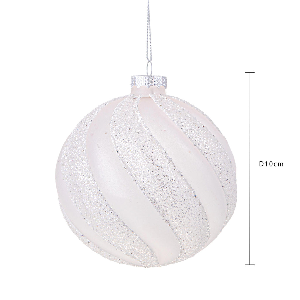 4er Set Christbaumkugeln mit Glitter Ø10 cm Weiß/Glitter