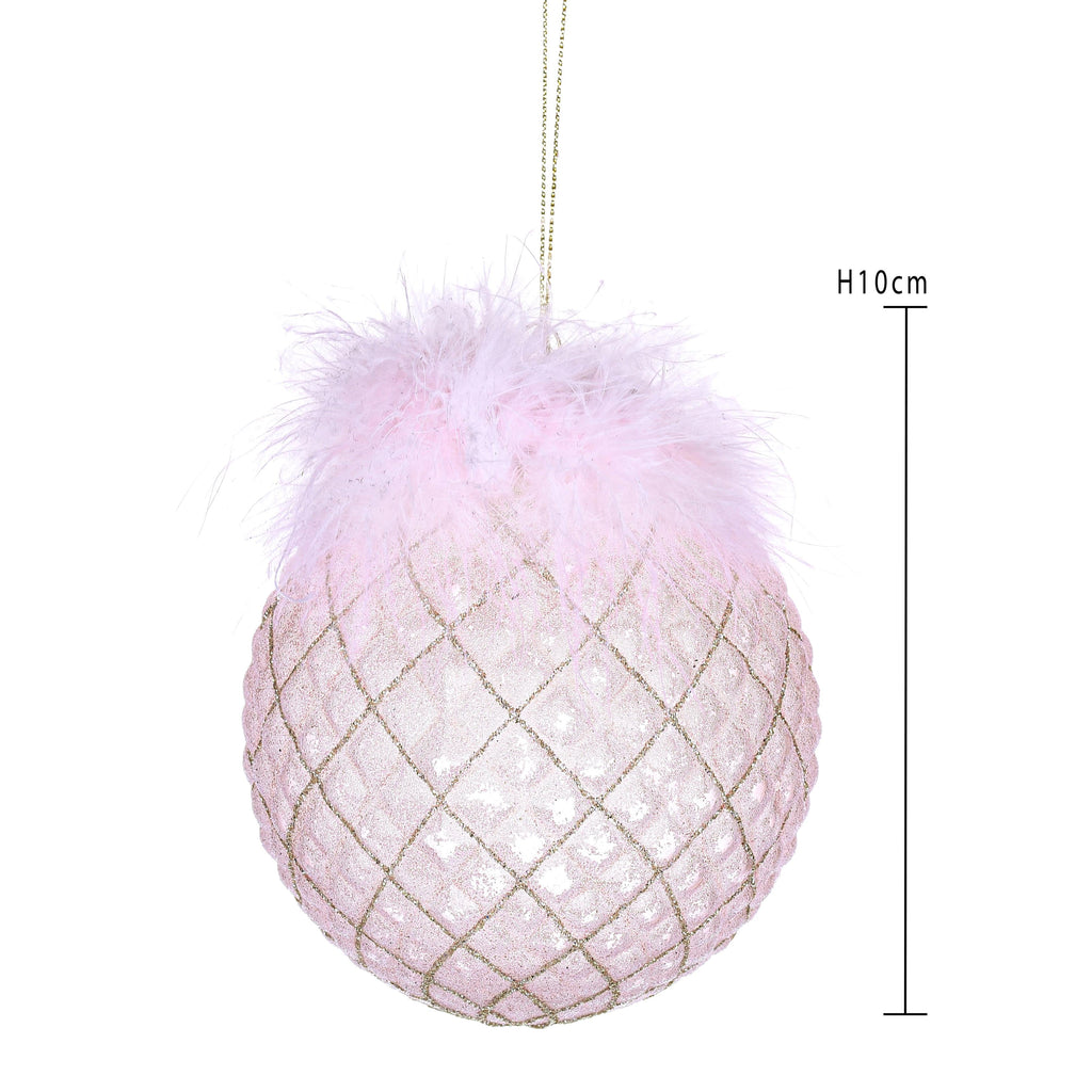 Set mit 4 dekorativen Weihnachtsbaumkugeln mit Federn Ø10 cm Rosa/Champagner
