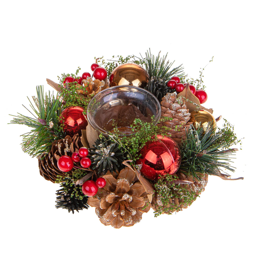 Set 4 Kerzenhalter mit dekorativen Kugeln und Beeren Ø15 cm Rot