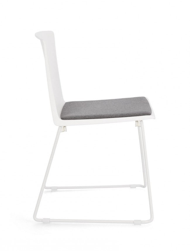 Sedia con seduta in plastica resistente al PP e cuscino in poliestere. Gambe in acciaio verniciato a polvere epossidica. Design impilabile per risparmio di spazio.Set 4 Sedie 43,5x50x79 cm Giulia in Poliestere Bianco e Bianco
