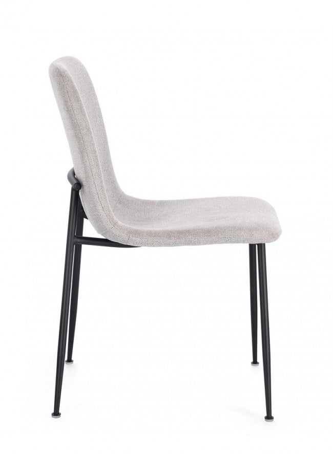 Struttura in compensato con gambe in acciaio verniciato. Imbottitura in schiuma poliuretanica. Rivestimento in poliestere e nylon. Gambe da assemblare.Set 4 Sedie 44x56x81 cm Rinas in Tessuto Grigio Chiaro