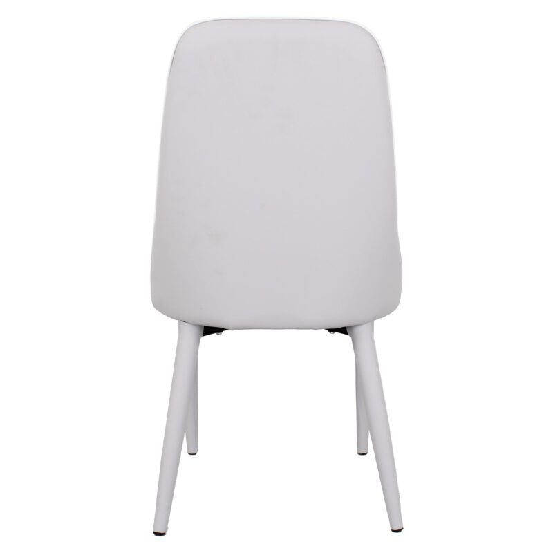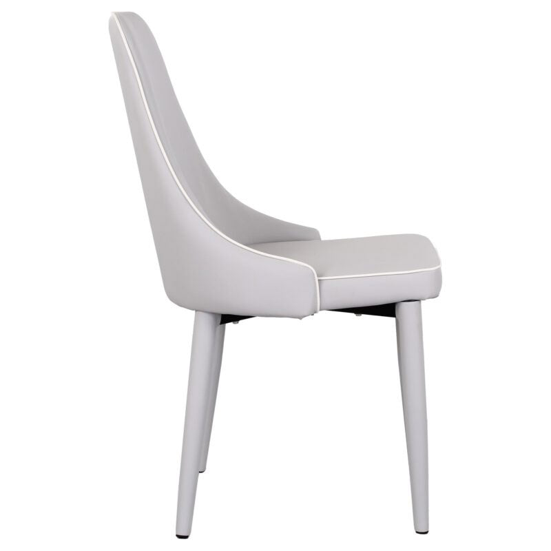 Robuster und eleganter Modellstuhl. Ideal für Restaurants, Bars, Pizzerien, Empfangsräume, Lounges, Küchen usw. Dank der Kunstlederpolsterung und der weichen Innenpolsterung hat der Stuhl einen einzigartigen Komfort. Die innere Struktur und die Beine sind aus Eisen, das mit Kunstleder überzogen ist. Darüber hinaus garantieren die Dichtungen unter den Füßen eine gute Stand- und Geräuschfestigkeit, außerdem beschädigen sie den Boden nicht, im Gegenteil, sie schützen und verhindern ein Verrutschen des Stuhls. Wunderschön ist der farblich abgesetzte Rand aus Kunstleder, der um den gesamten Umfang des Stuhls verläuft.