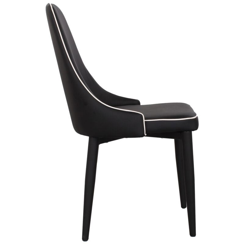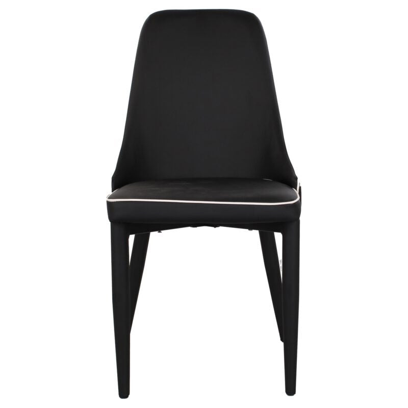 Robuster und eleganter Modellstuhl. Ideal für Restaurants, Bars, Pizzerien, Empfangsräume, Lounges, Küchen usw. Dank der Kunstlederpolsterung und der weichen Innenpolsterung hat der Stuhl einen einzigartigen Komfort. Die innere Struktur und die Beine sind aus Eisen, das mit Kunstleder überzogen ist. Darüber hinaus garantieren die Dichtungen unter den Füßen eine gute Stabilität und Lärmbeständigkeit, außerdem beschädigen sie den Boden nicht, im Gegenteil, sie schützen und verhindern das Verrutschen.Die kontrastfarbene Umrandung aus Kunstleder, die um den gesamten Umfang des Stuhls verläuft ist sehr schön.