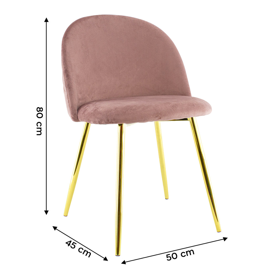 Set mit 4 Stühlen 50 x 45 x 80 cm aus samtigem Stoff mit Füßen in Antik-Roségold