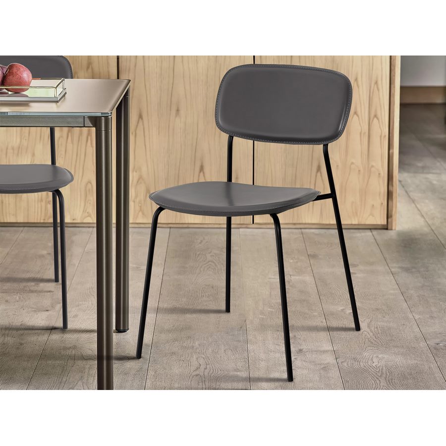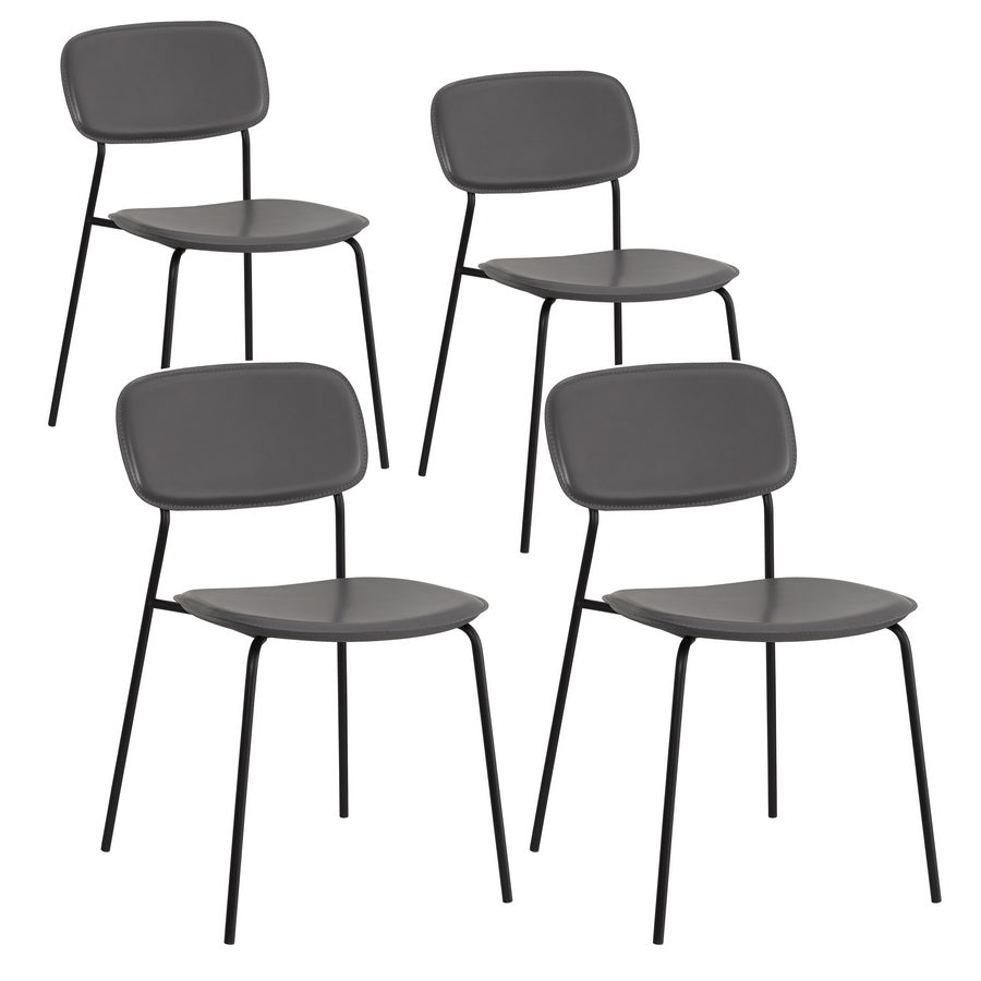 Set da quattro sedie ergonomiche in PVC Hani grigie, la soluzione di eleganza per ogni esigenza Il set da 4 sedie moderne in PVC è una soluzione economica e conveniente per arredare la tua casa o il tuo ufficio con stile e funzionalità. Come sedia da salotto è comoda ed ergonomica, e la seduta in PVC offre un'ottima comodità grazie alla sua forma ergonomica e allo schienale curvato che si adatta alla forma della schiena, garantendo una seduta confortevole anche per periodi prolungati. La struttura tubolare in metallo nero è resistente e durevole, garantendo una capacità di carico massima di 120 kg. La seduta in PVC è resistente alle macchie e facile da pulire, grazie alla sua superficie liscia e impermeabile.