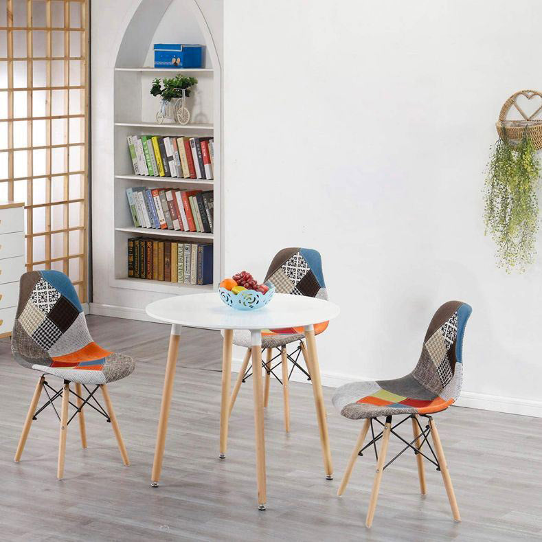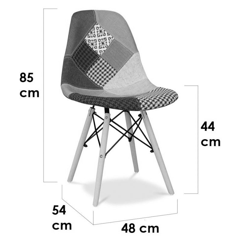 Mit einem modernen und raffinierten Design ist der Patchwork Chair mod. es passt zu jeder art von möbeln. Perfekt für Küche, Wohnzimmer, Schlafzimmer, Büro, Bars und Restaurants. Ein Hauch von Originalität und Farbe, um jeder Umgebung Lebendigkeit zu verleihen. Die Struktur ist aus schwarzem Metall mit Beinen aus Buchenholz. Es hat Dichtungen unter den Füßen für eine gute Stabilität und Lärmbeständigkeit, außerdem beschädigen sie den Boden nicht, im Gegenteil, sie schützen und verhindern das Verrutschen des Stuhls. Der Sitz ist mit Schwamm gepolstert, aus Patchwork-Stoff. Die Rückenlehne ist bequem und bequem, um den Komfort bei totaler Entspannung zu erhöhen.
