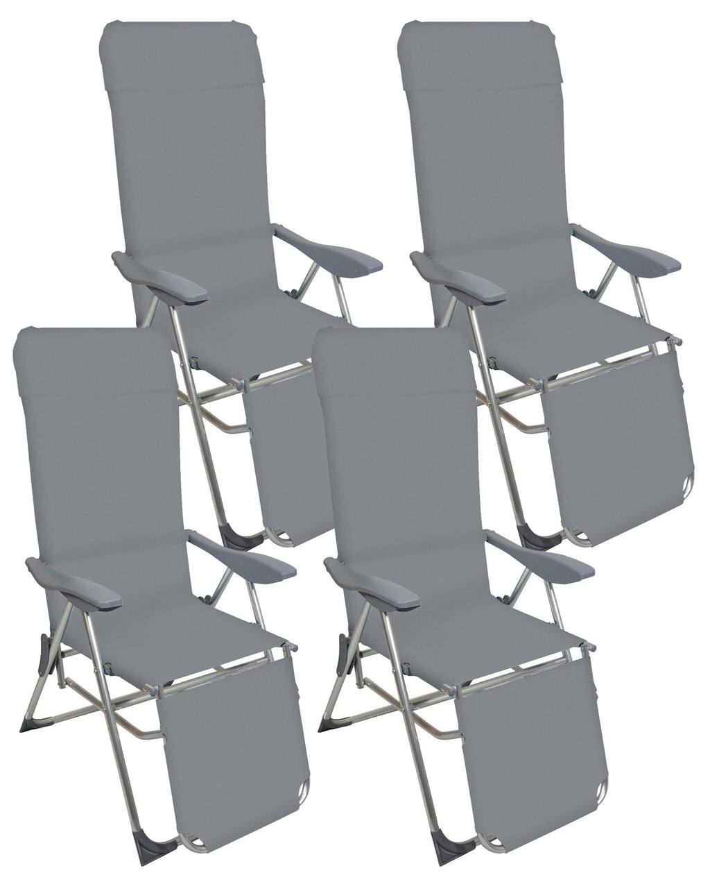 Set mit 4 klappbaren Liegestühlen 59 x 76 x 109 cm mit Fußstütze aus Aluminium und grauem Textilene