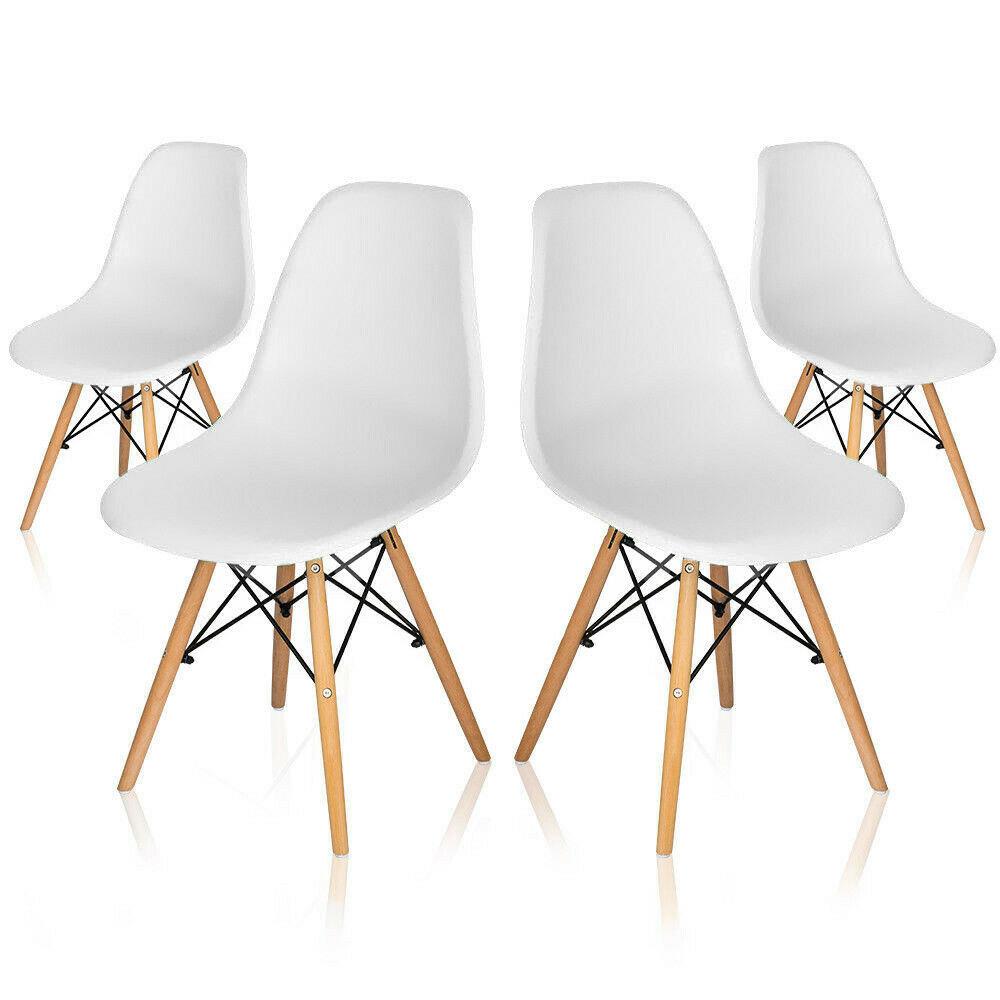 Set aus 4 Stühlen mit Holzstruktur und weißem Luka-Harzsitz
