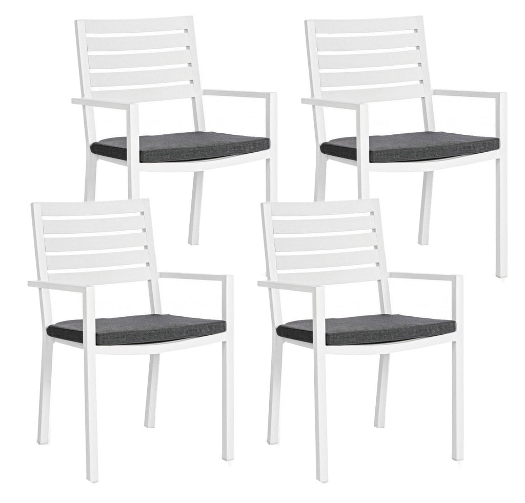 Set 4 Sedie da Giardino 55x56,5x86,5h cm con Braccioli e Cuscini Helina Bianco
