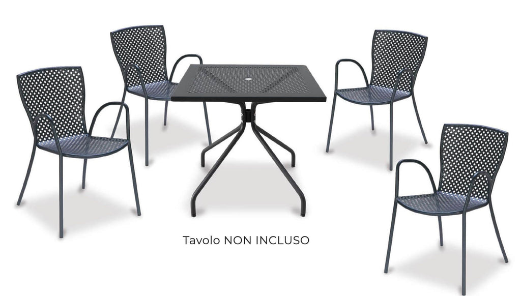Set aus 4 Gartenstühlen 56x62x84 cm in Stahl mit Armlehnen RD Italia Sonia Anthrazit