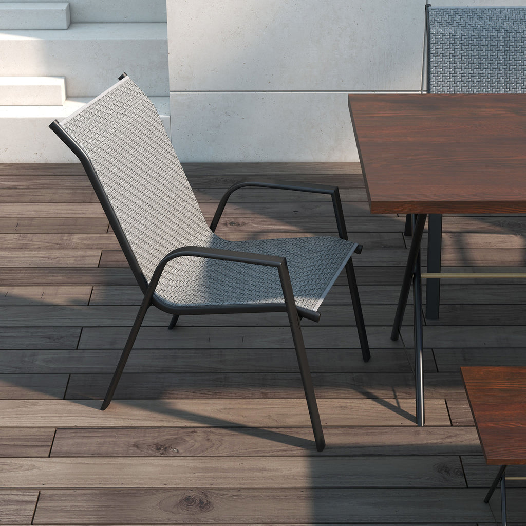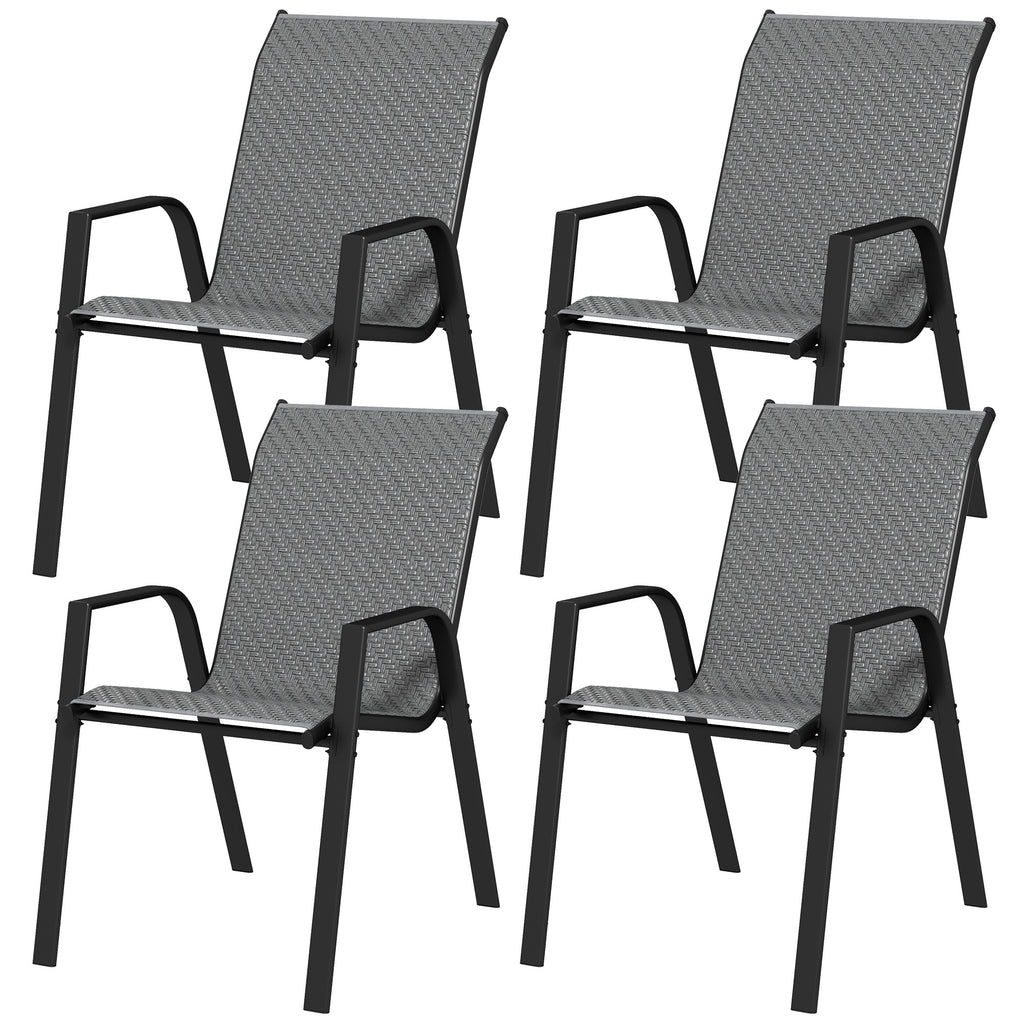 Set 4 Sedie da Giardino Impilabili con Braccioli 52x70x85 cm in Rattan PE e Acciaio Grigio