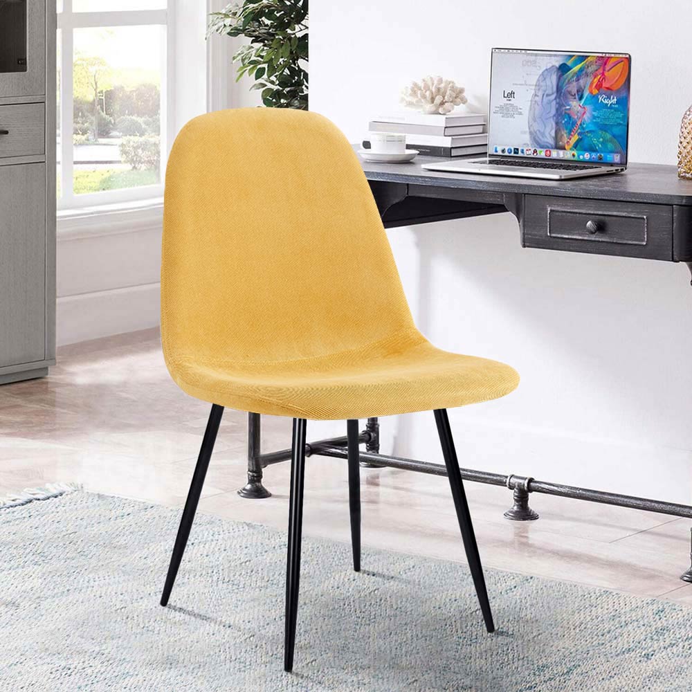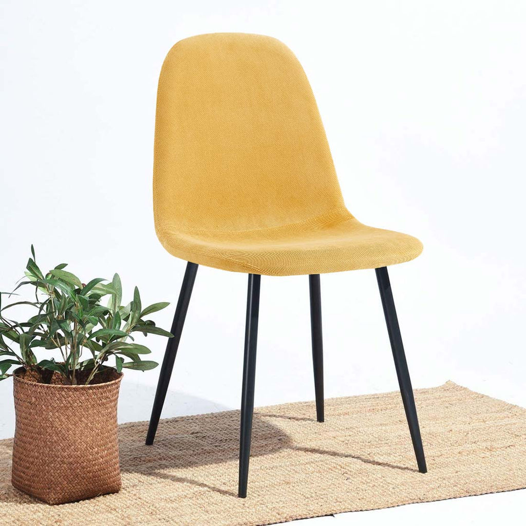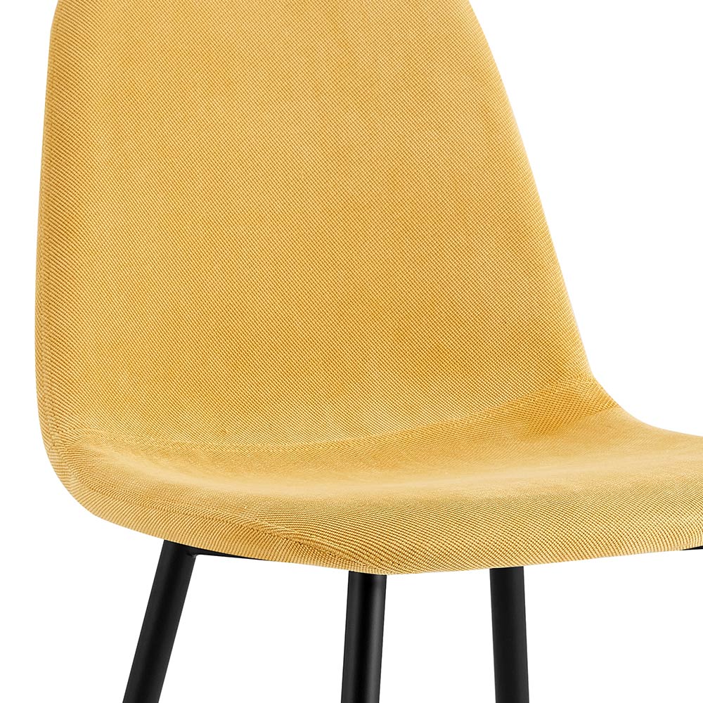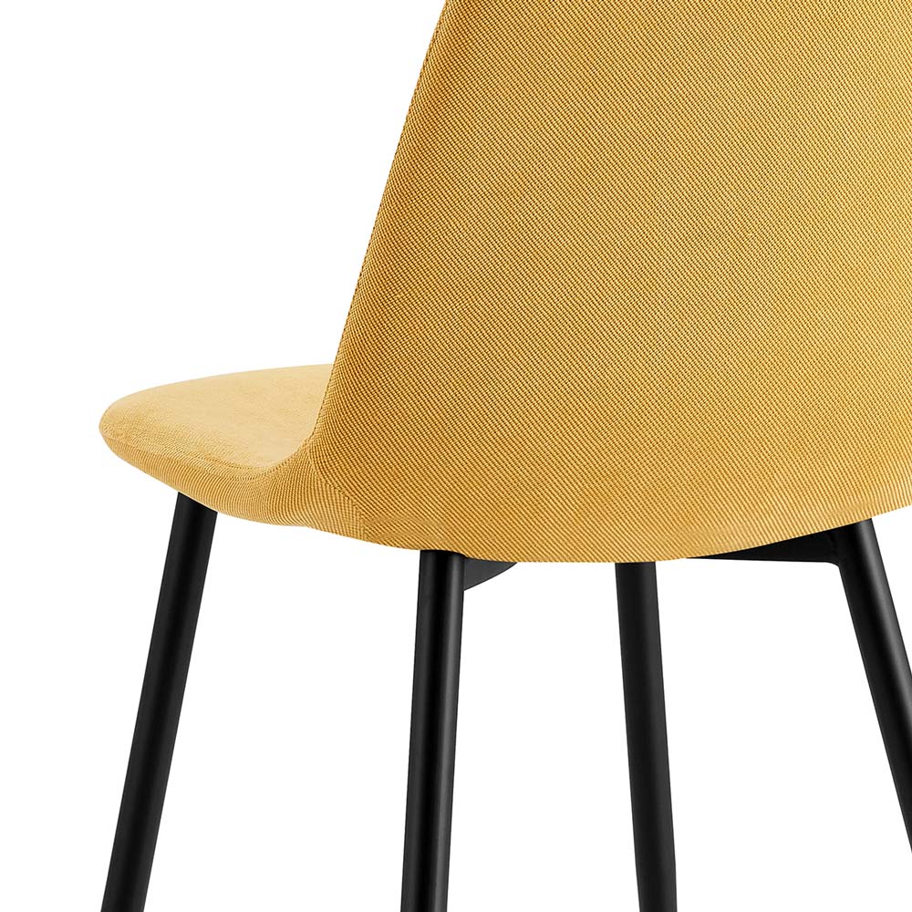 Perfette come sedie da salotto e come sedie sala da pranzo. Le sedie per soggiorno modello Bella condividono un design di gusto nordico, caratterizzato da uno stile minimal e da un'eleganza innata che mette insieme il freddo dei piedi in metallo dipinti di nero con il calore della seduta imbottita rivestita da morbido tessuto dal caldo color giallo paglierino.