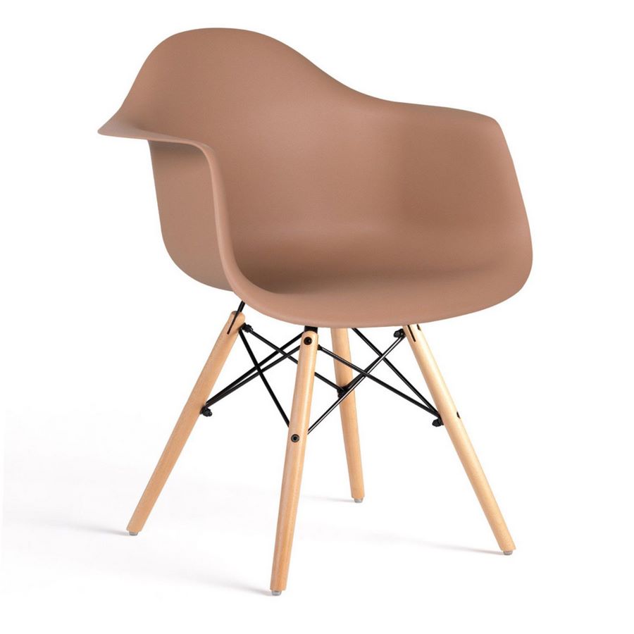 Queste sedie design hanno gambe in legno di faggio e corpo in polipropilene in un originalissimo color cammello. Il comfort di queste sedie è massimo grazie alla forma ergonomica e alla presenza di braccioli perfettamente integrati con seduta e schienale.