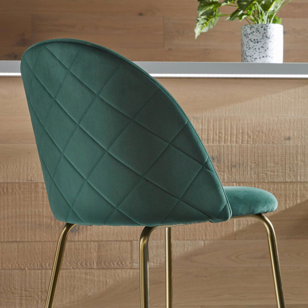 Es hat Dichtungen unter den Füßen für eine gute Stabilität und Lärmbeständigkeit, außerdem beschädigen sie den Boden nicht, im Gegenteil, sie schützen und verhindern das Verrutschen des Stuhls. Der Sitz ist mit Schwamm gepolstert, aus Samt. Die Rückenlehne ist bequem und bequem, um den Komfort bei totaler Entspannung zu erhöhen. Ein Hauch von Originalität wird durch die Steppnähte an der Rückenlehne verliehen.