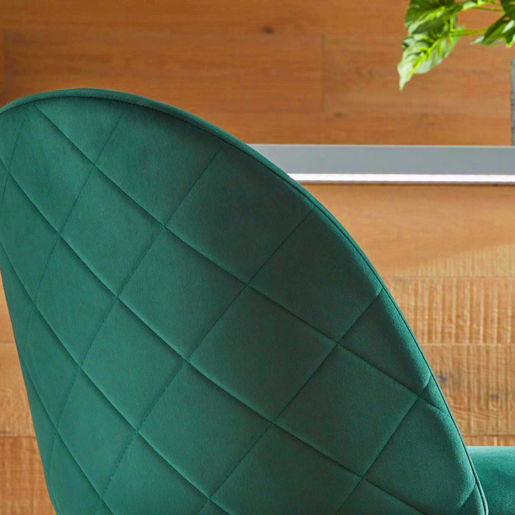 Es hat Dichtungen unter den Füßen für eine gute Stabilität und Lärmbeständigkeit, außerdem beschädigen sie den Boden nicht, im Gegenteil, sie schützen und verhindern das Verrutschen des Stuhls. Der Sitz ist mit Schwamm gepolstert, aus Samt. Die Rückenlehne ist bequem und bequem, um den Komfort bei totaler Entspannung zu erhöhen. Ein Hauch von Originalität wird durch die Steppnähte an der Rückenlehne verliehen.