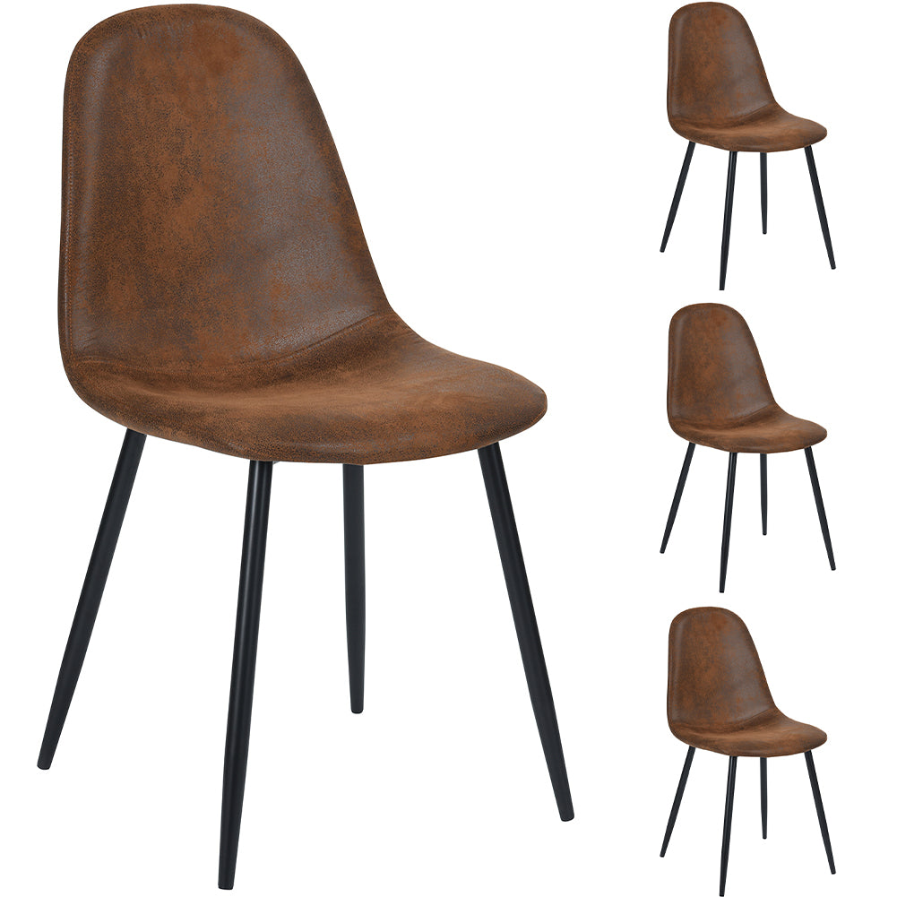 Set 4 Sedie per Sala da Pranzo Marrone con Gambe Acciaio Nero Seduta Ergonomica
