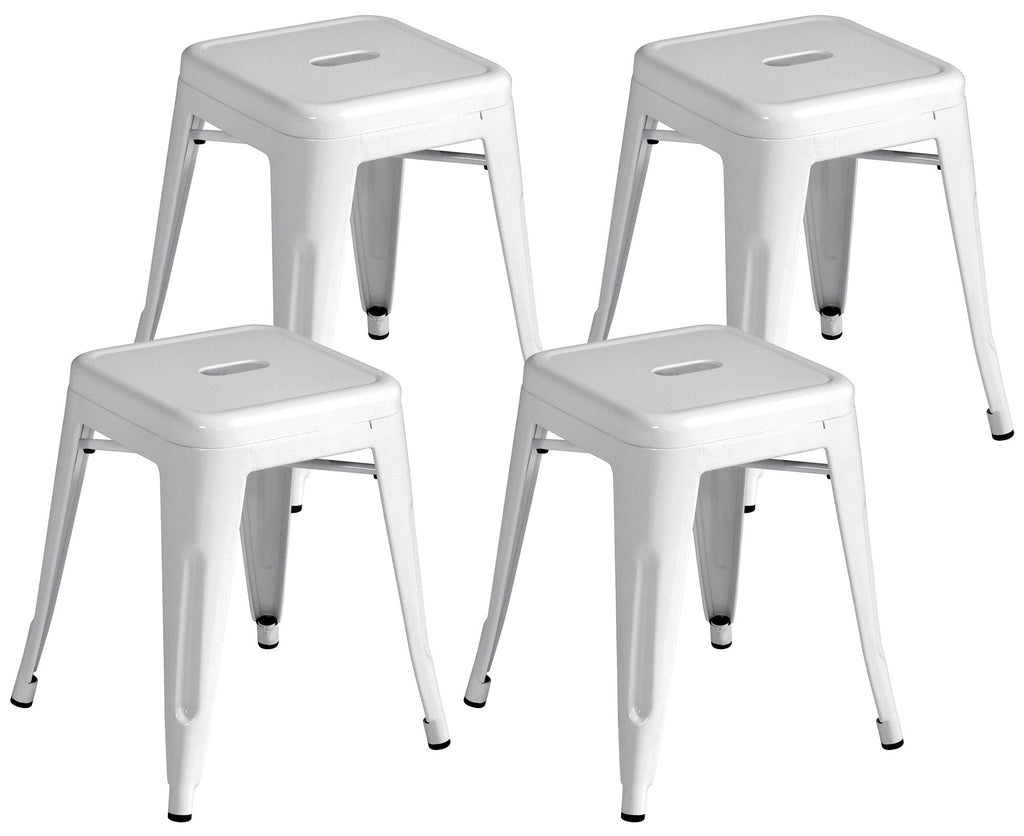 Satz mit 4 niedrigen stapelbaren Hockern 39 x 39 x 46 cm aus elfenbeinfarbenem, verzinktem Blech