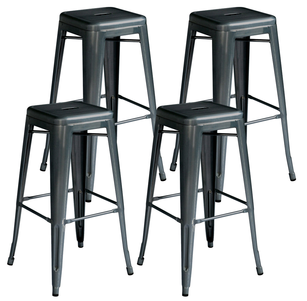 Satz mit 4 stapelbaren Hockern 44 x 44 x 77 cm aus bleiverzinktem Blech