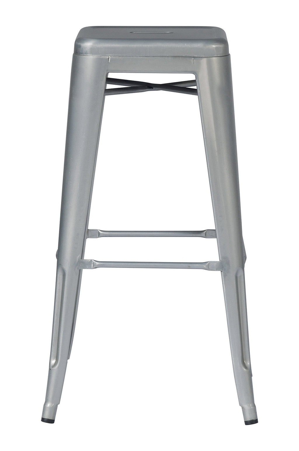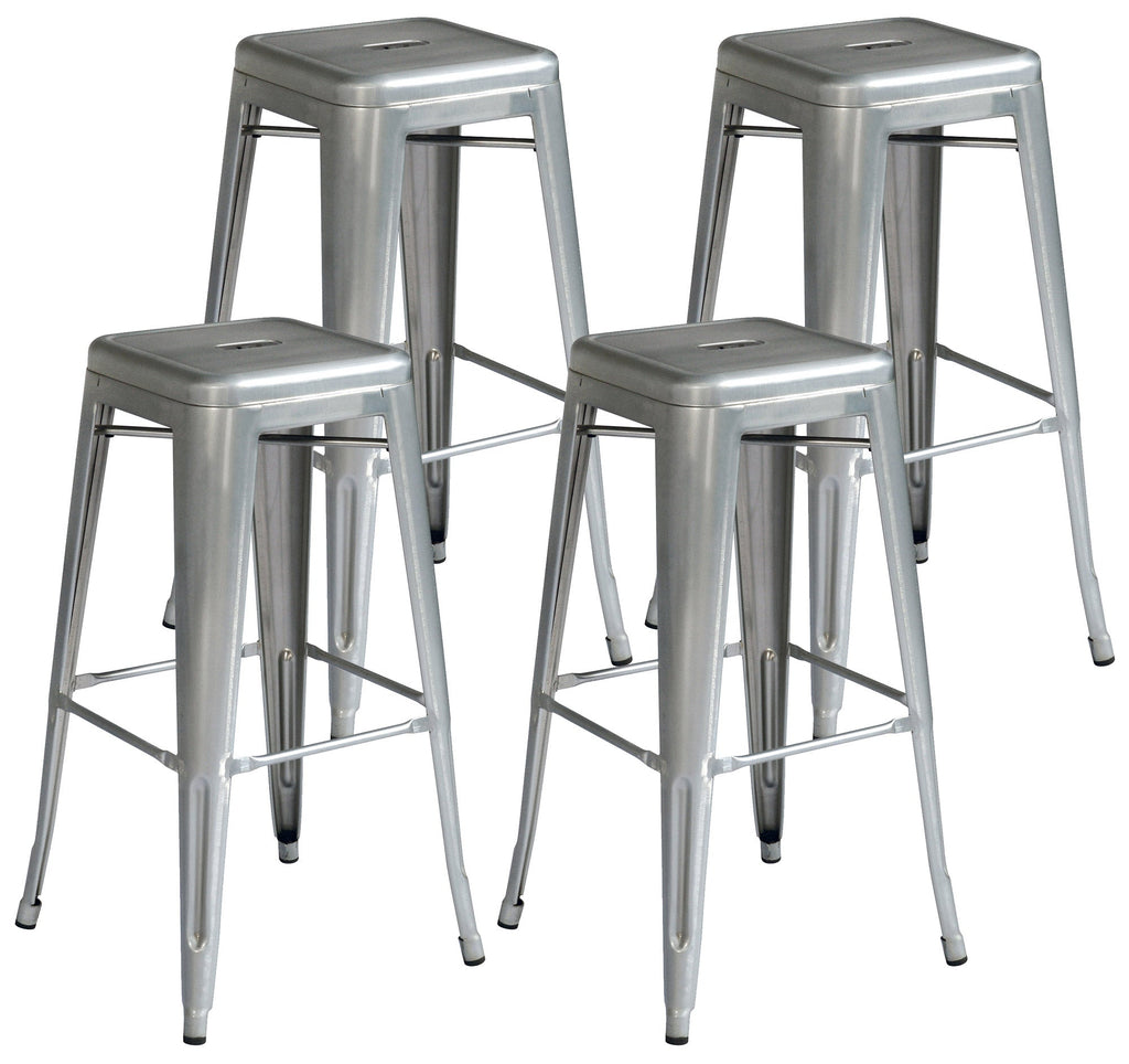 Set mit 4 stapelbaren Hockern 44 x 44 x 77 cm aus silberverzinktem Blech