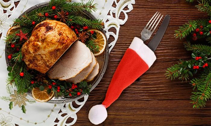 Set mit 4 weihnachtlichen Bestecktaschen aus Polyester Rizzetti Weihnachtsmannmütze