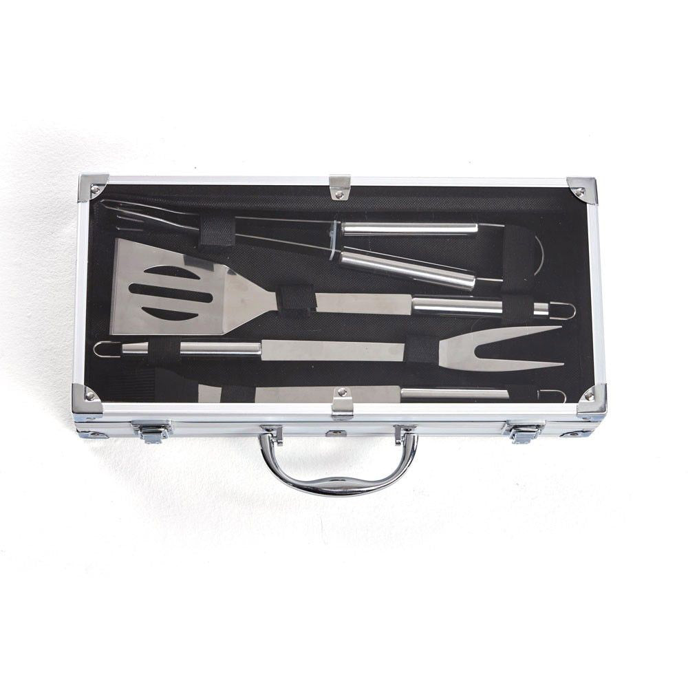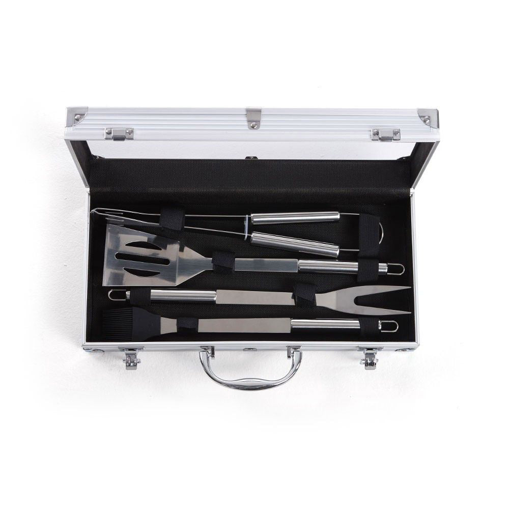Set mit 4 Grillwerkzeugen aus Stahl mit Koffer