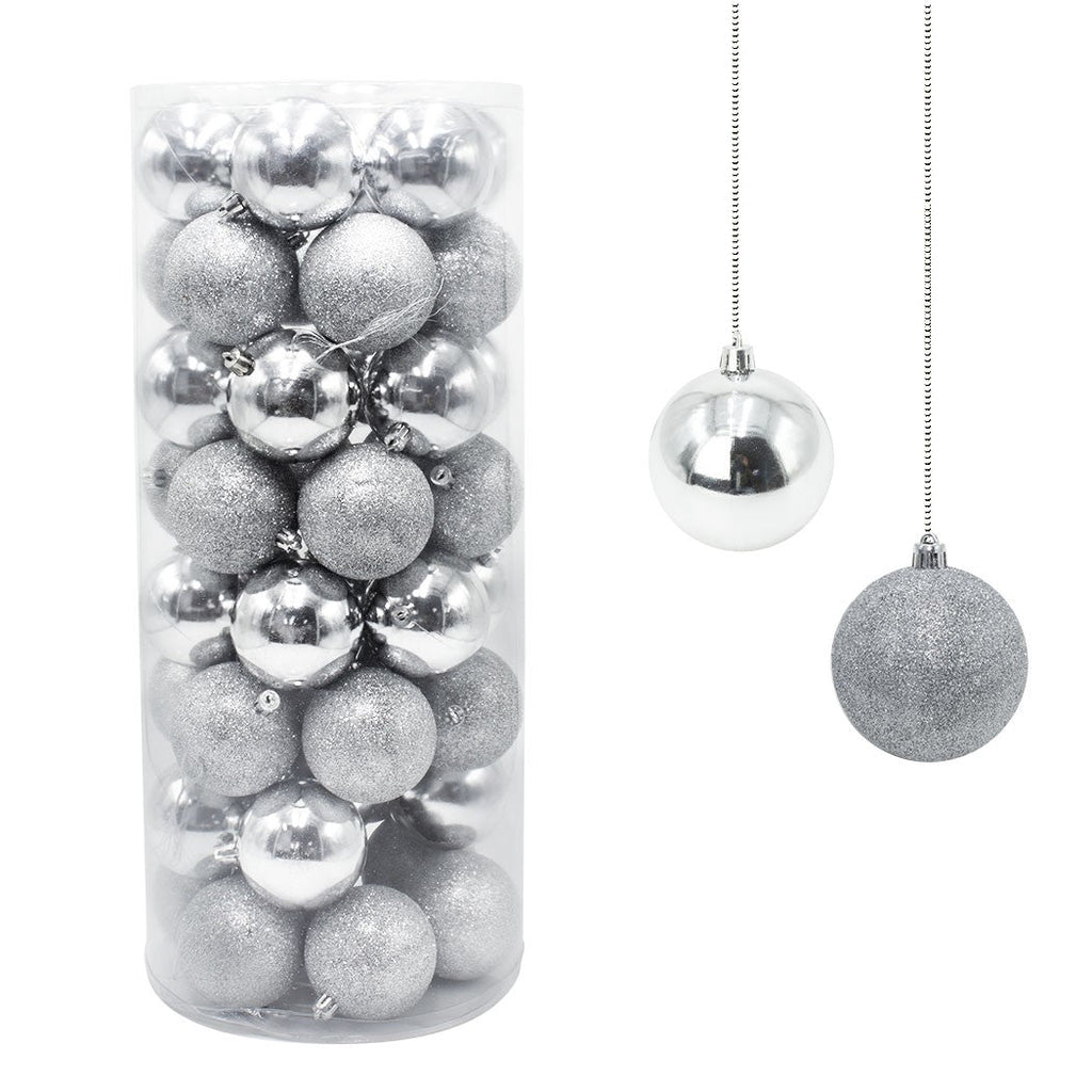 Wunderschöne Packung mit 48 Weihnachtskugeln, um Ihren Weihnachtsbaum optimal zu schmücken. Diese schönen Weihnachtskugeln sind aus strapazierfähigem und umweltfreundlichem PVC-Material hergestellt, um im Vergleich zu herkömmlichen Glasprodukten eine hervorragende bruchsichere Leistung zu bieten. Sie haben einen Durchmesser von 7 cm und die Verpackung ist in glänzende und glitzernde Kugeln unterteilt. Die Kugeln verfügen über Kappen und Schnurhaken, die alle stark und robust sind, um sie an Ästen aufzuhängen. Vorbereitungen und Dekorationen sind der aufregendste Teil vor der Ankunft der Weihnachtsferien, verpassen Sie nicht die besten Dekorationen.