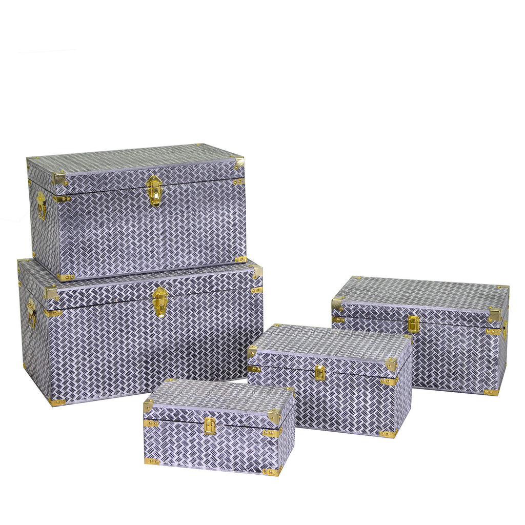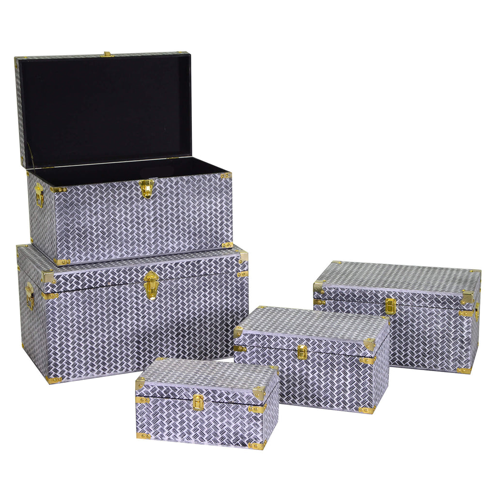 Set aus 5 rechteckigen schwarzen Holzkisten